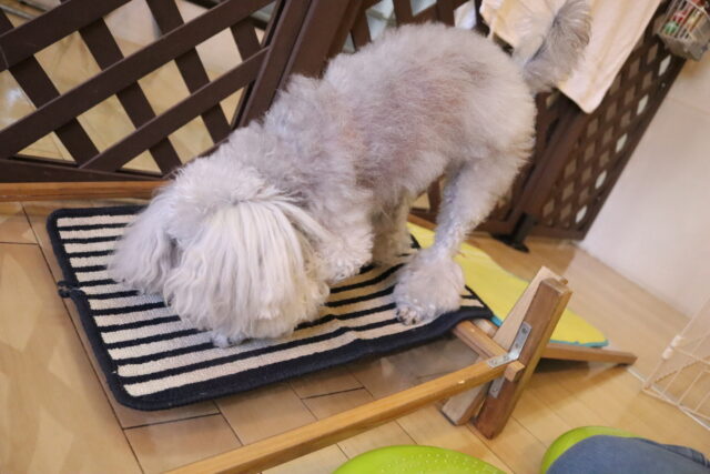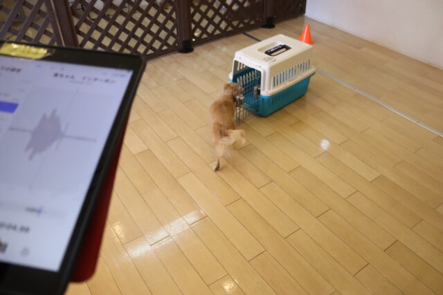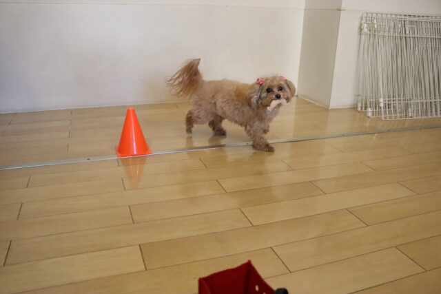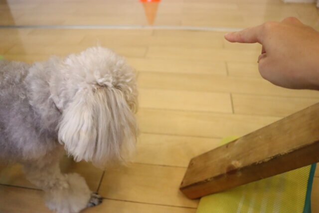 シルヴィーちゃんもパーテーションで作った坂道で物・足場慣れを行っています!