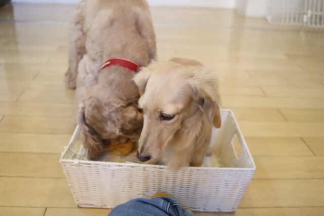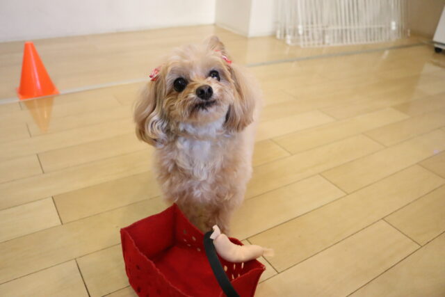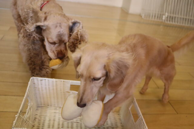 お片付けの練習では仲良くおそろいのパンを勢いよく持って来る2頭🍞