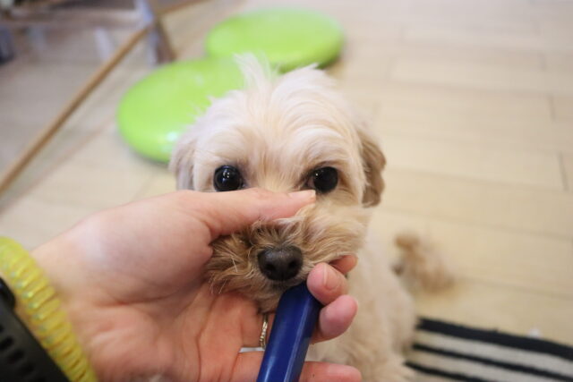 マズルを持たれることが苦手そうだったので、コツコツ練習して慣れていこうね(^^)/
