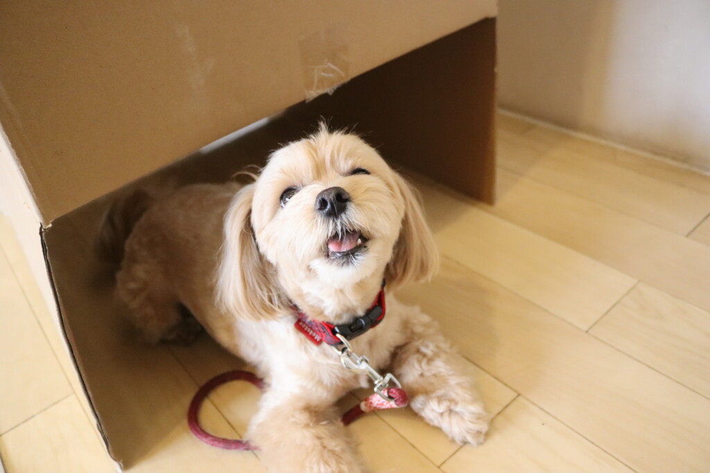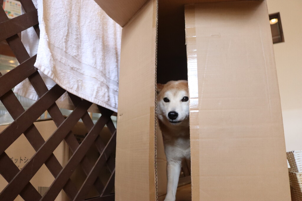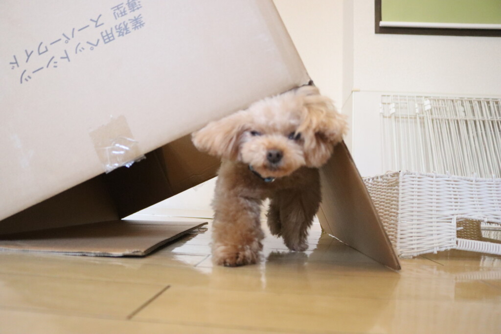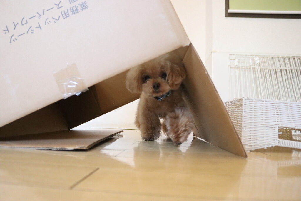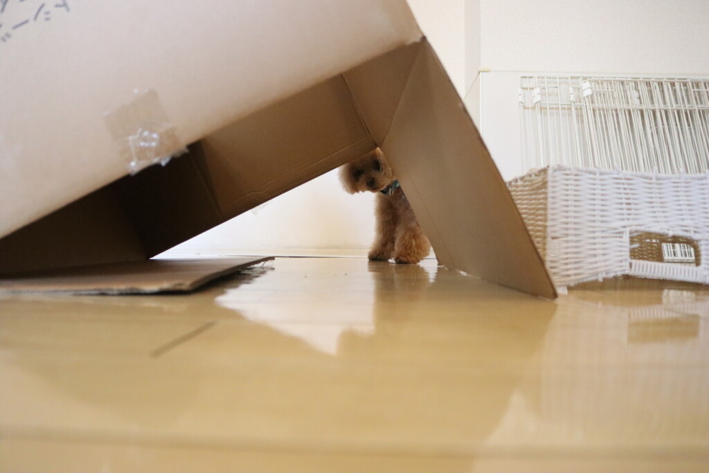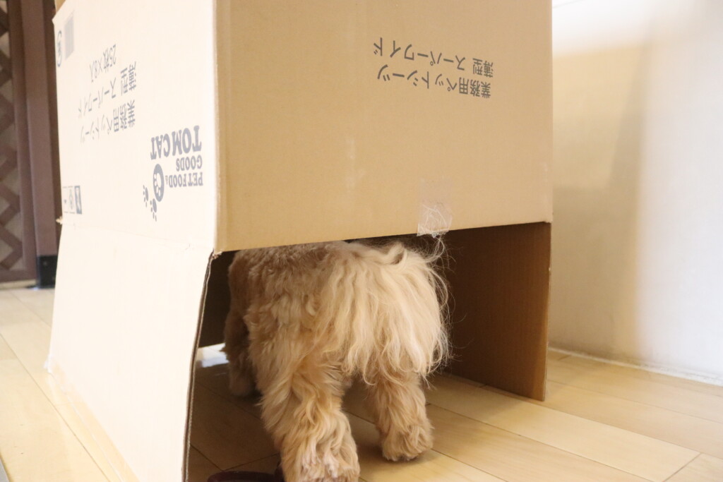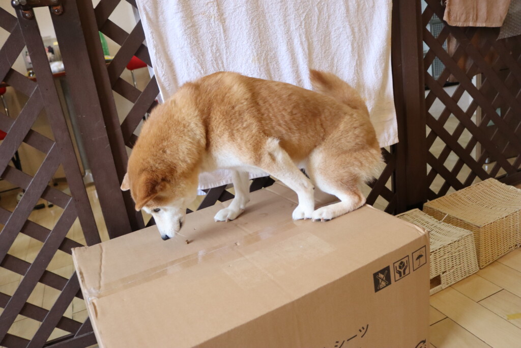 むぎくんはスタッフがダンボールを解体していたので見学!