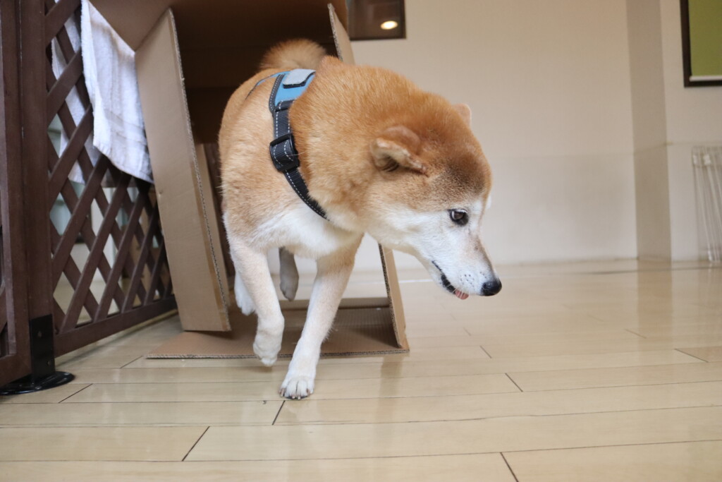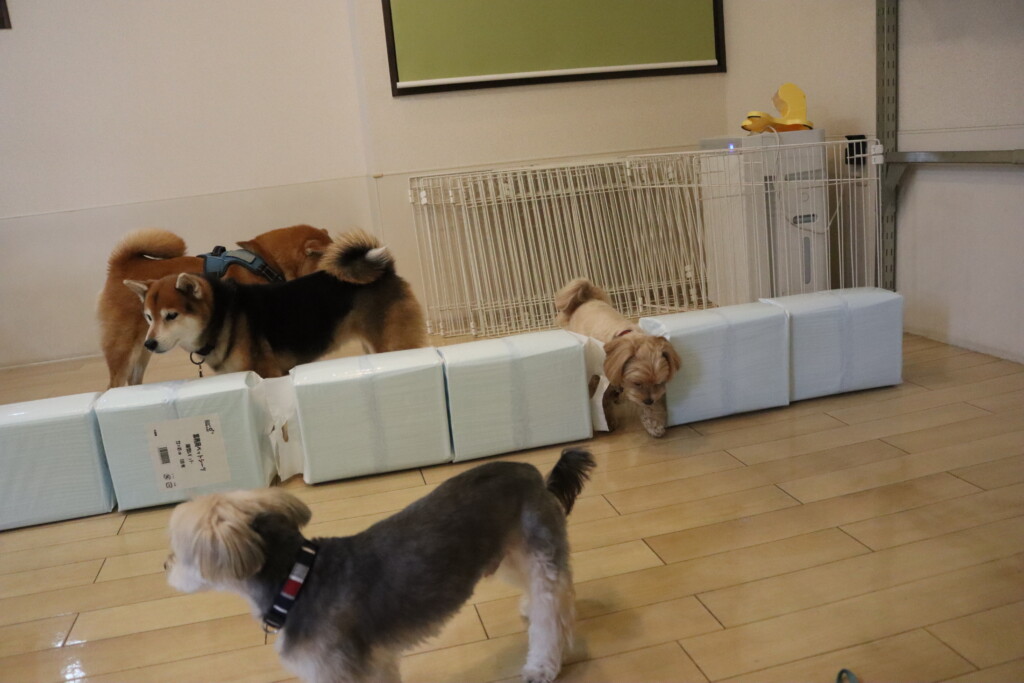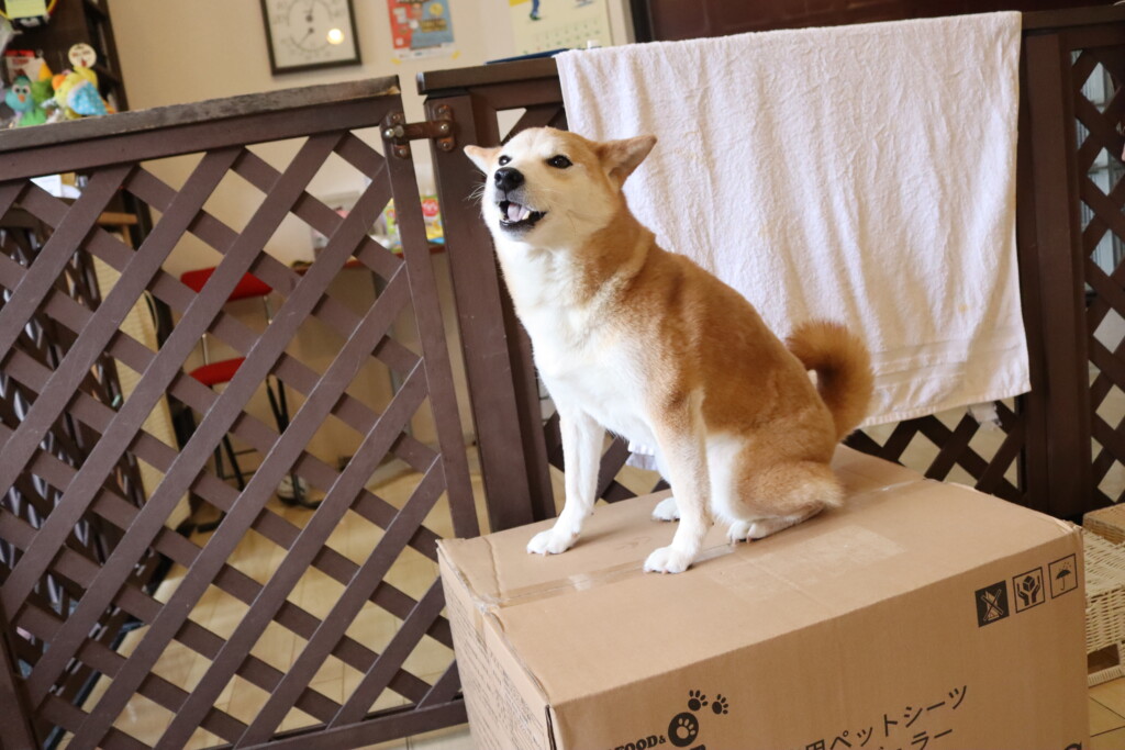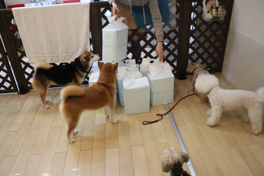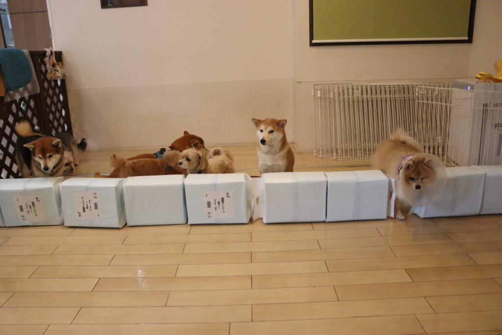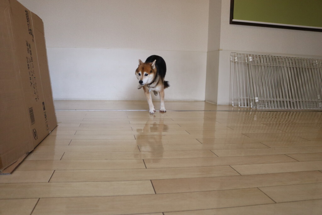 むぎくんはスタッフがダンボールを解体していたので見学!