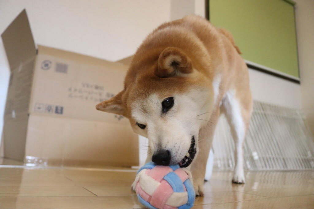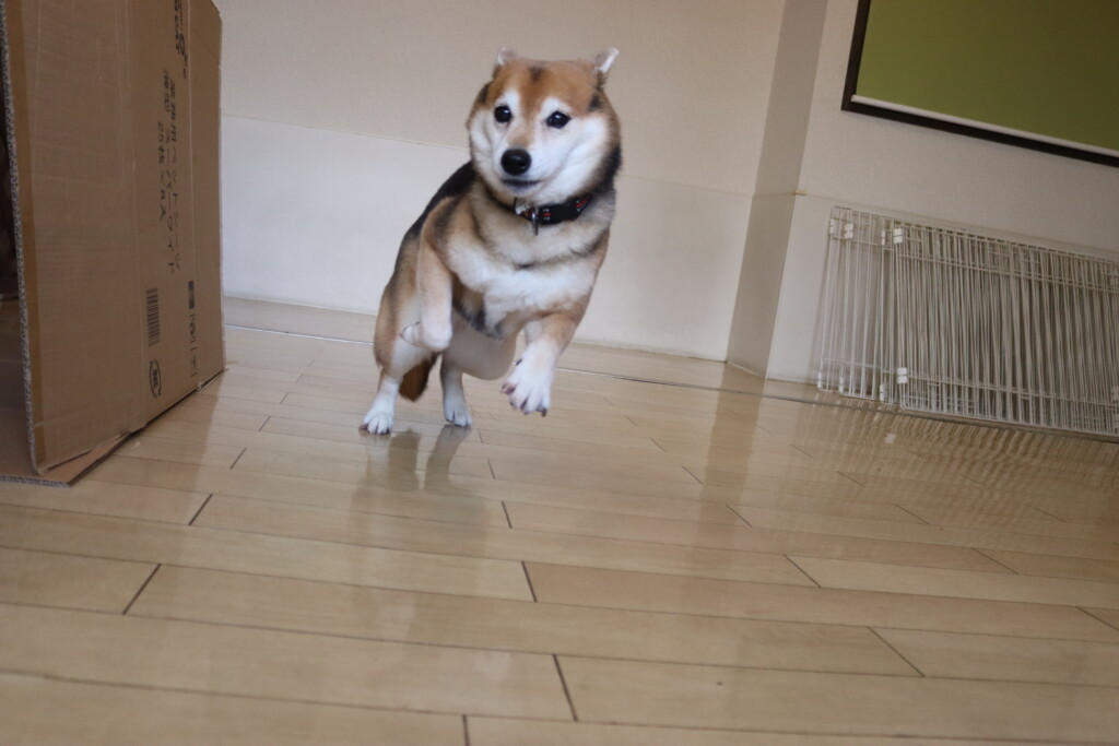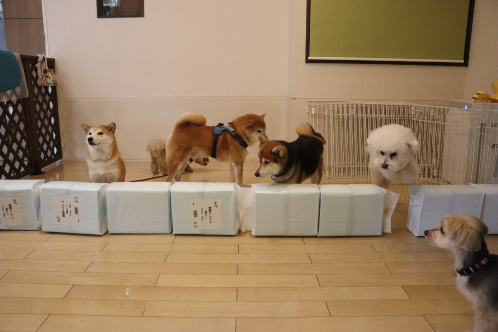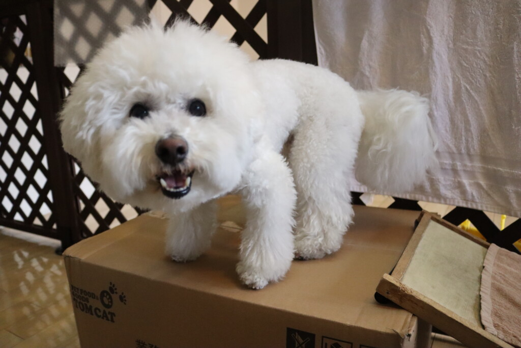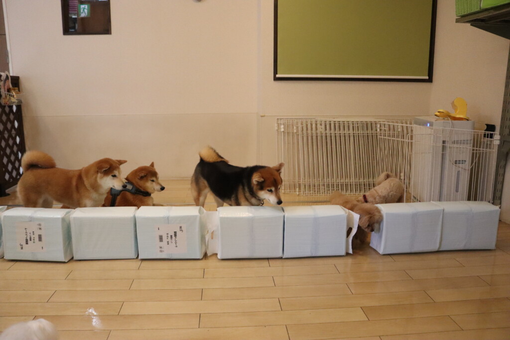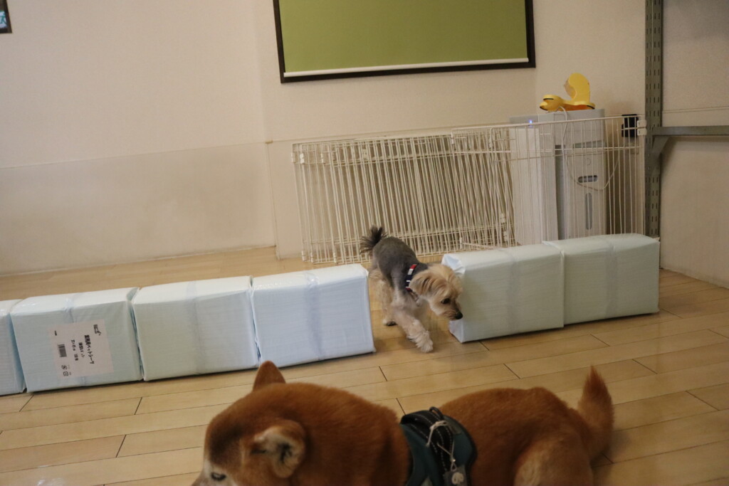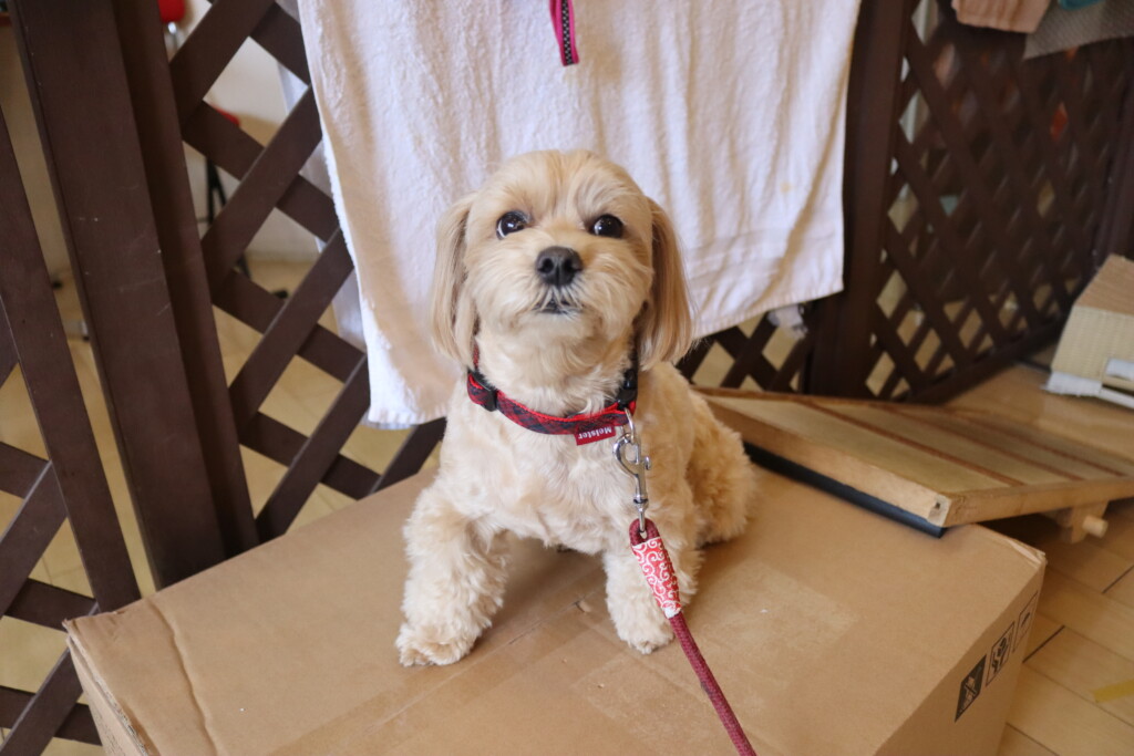 むぎくんはスタッフがダンボールを解体していたので見学!