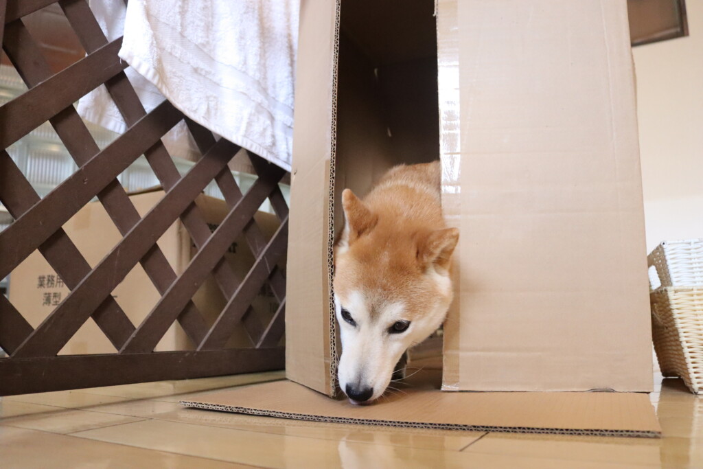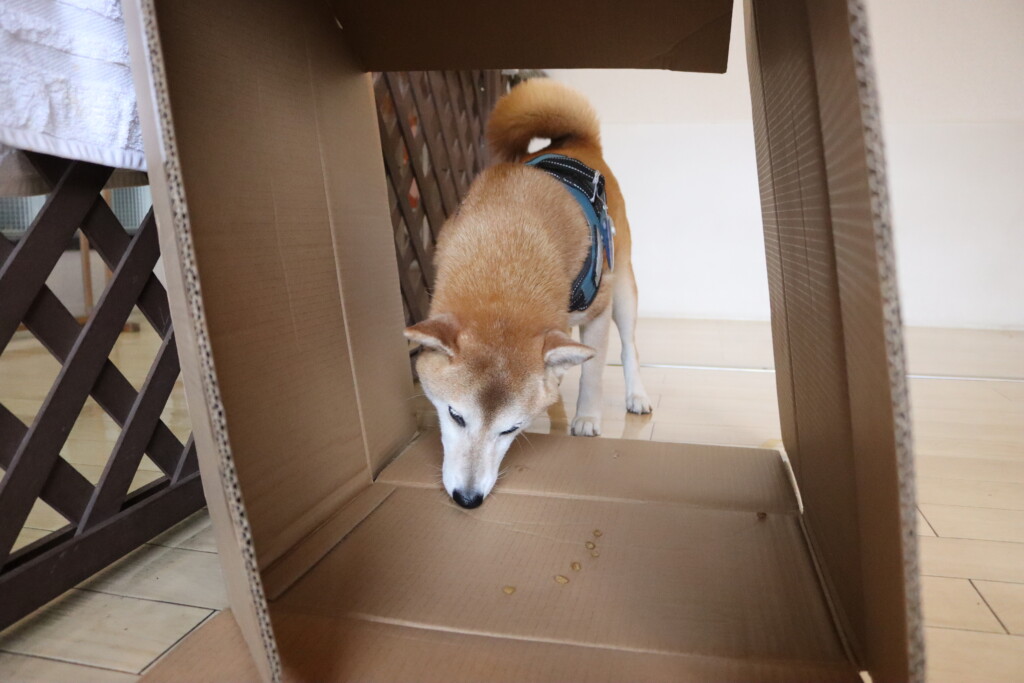ダンボールの音や動きなどに警戒しながらも最後は中まで確認することが出来たね♪