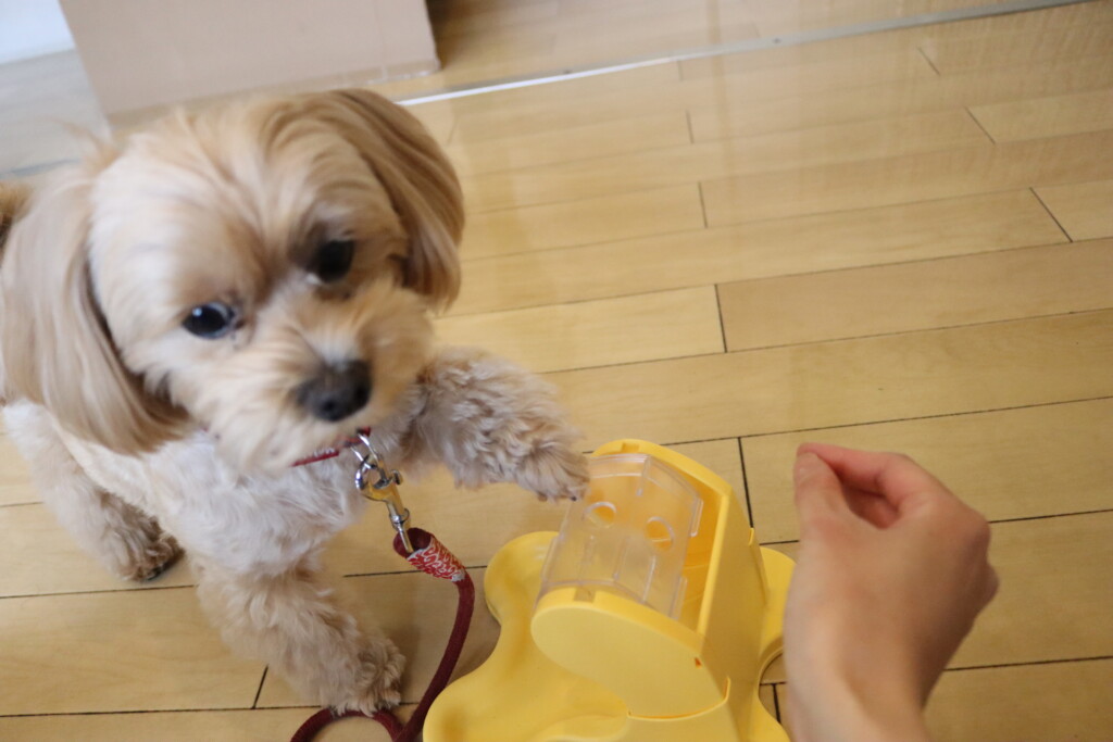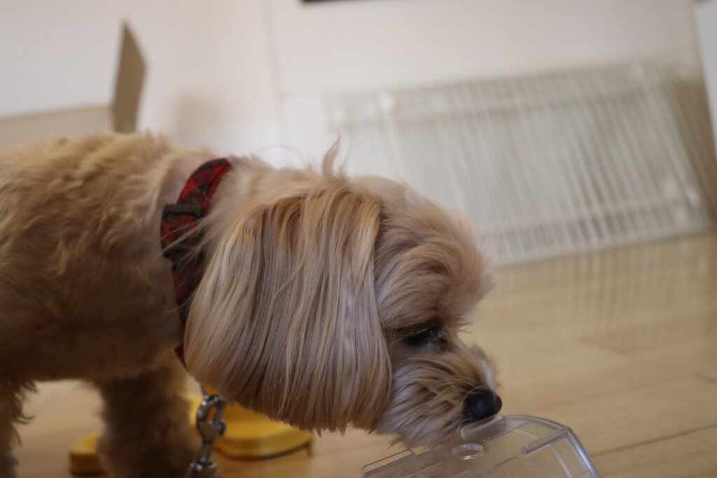 本体を前足で触るのは苦手なようでノールックで触る茶々ちゃんでした(笑)