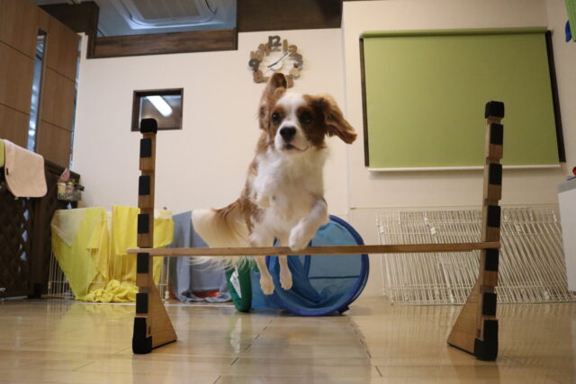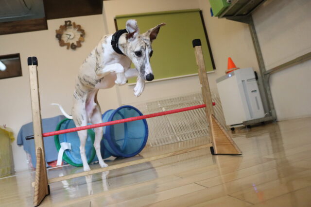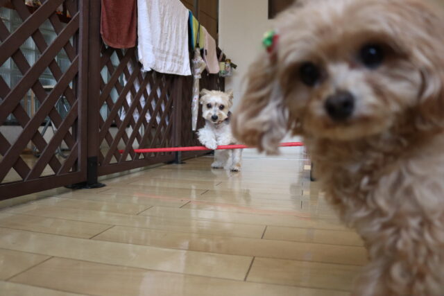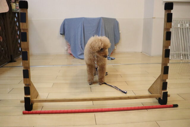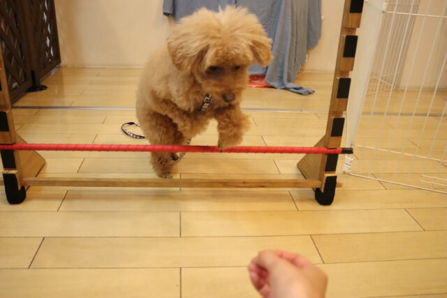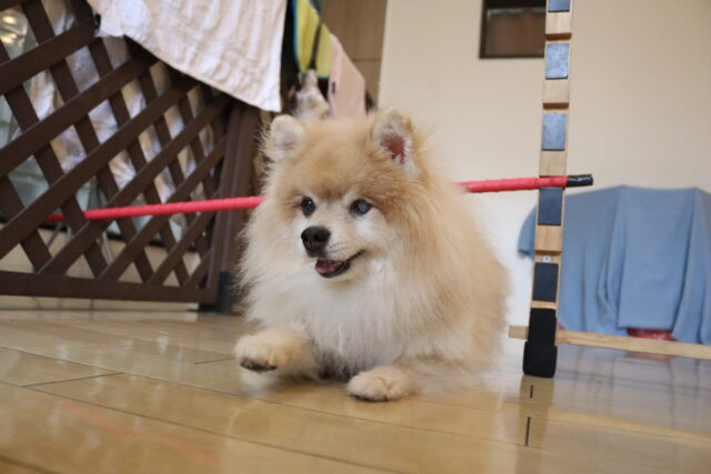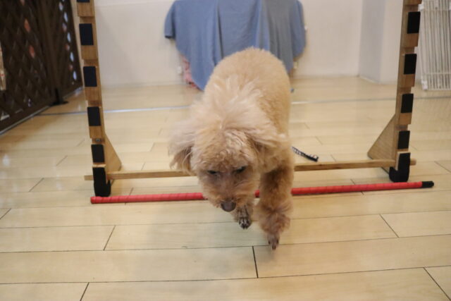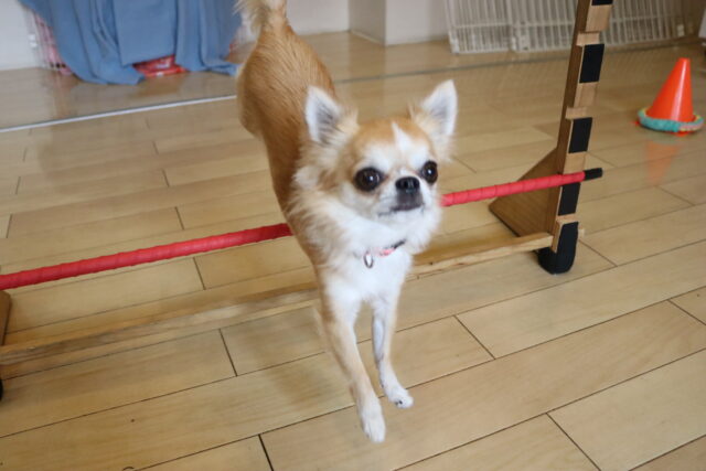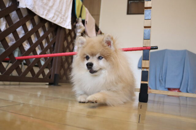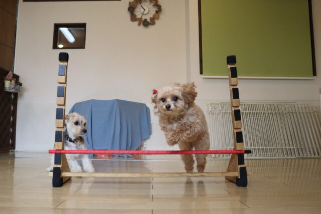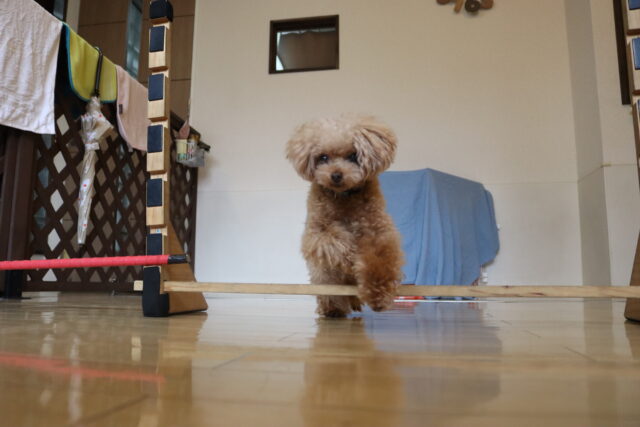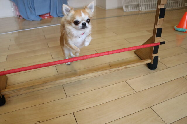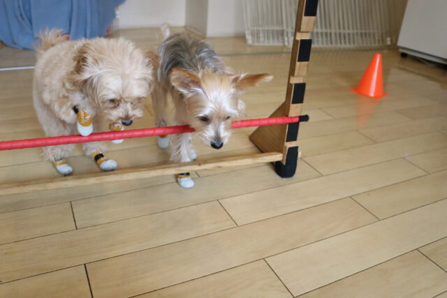 ハードルに挑戦!ルルちゃんの勢いに困惑気味のむぎくん(*´ω`)