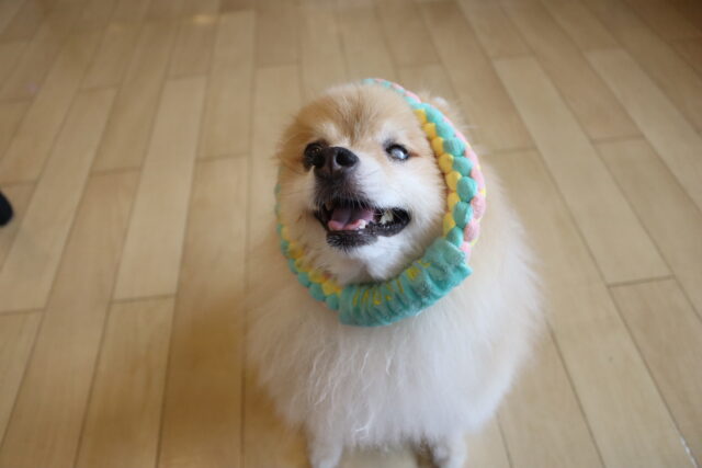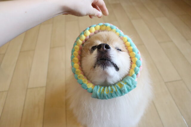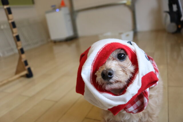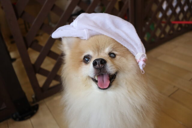 頭に掛けても気にせずこの表情😊へっちゃらなようです!