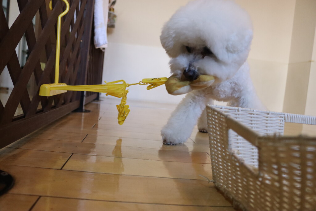 「よいしょ!」と今回もルンルンで洗濯物を取り込んでくれています♪