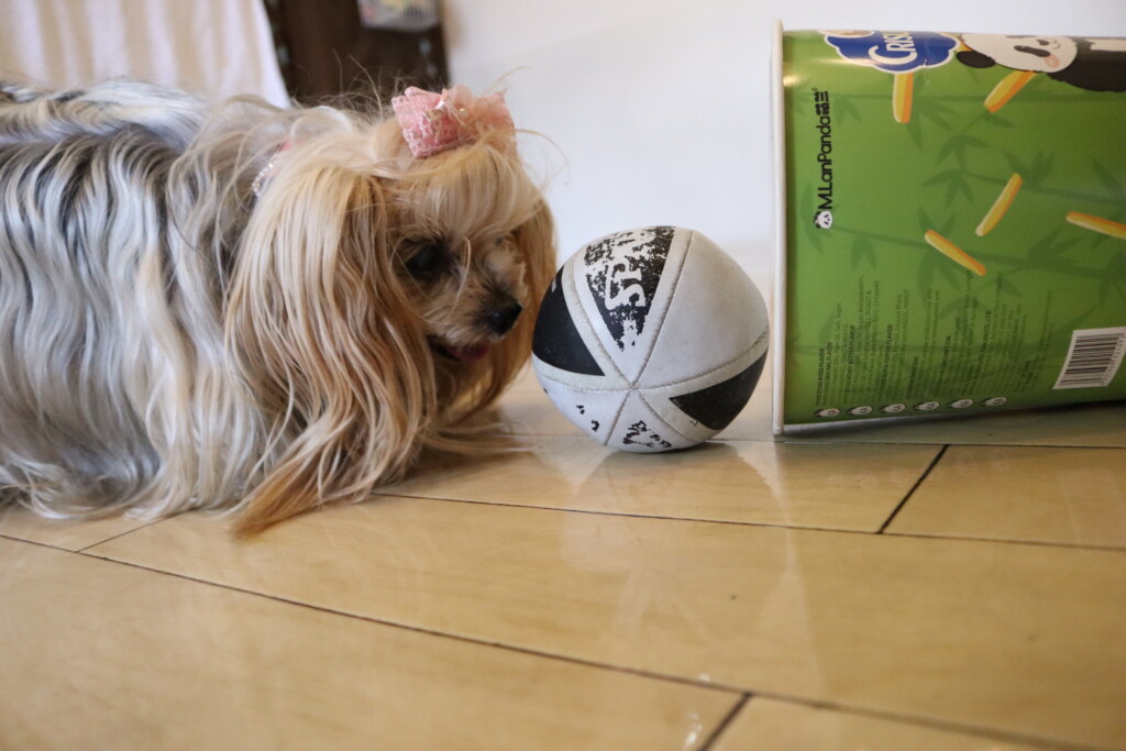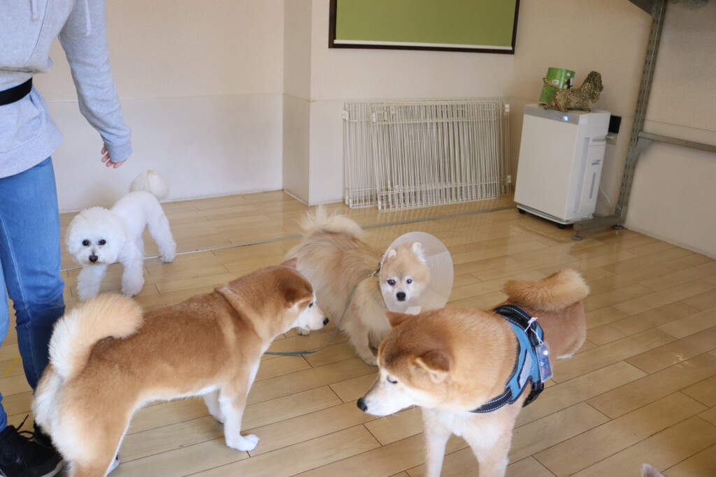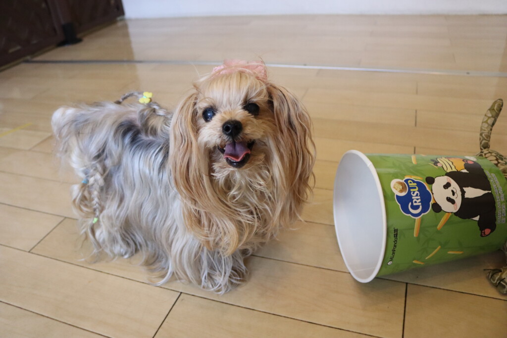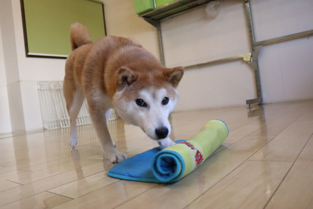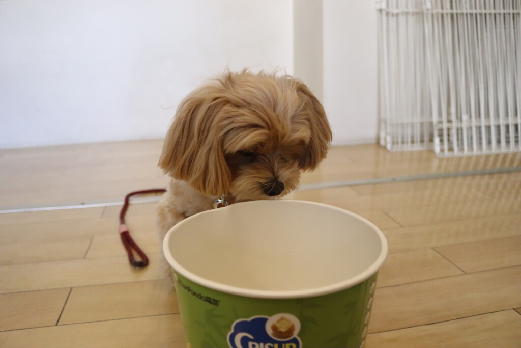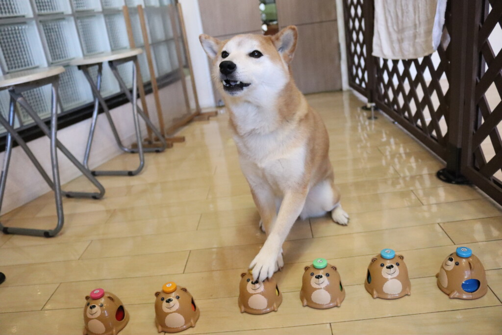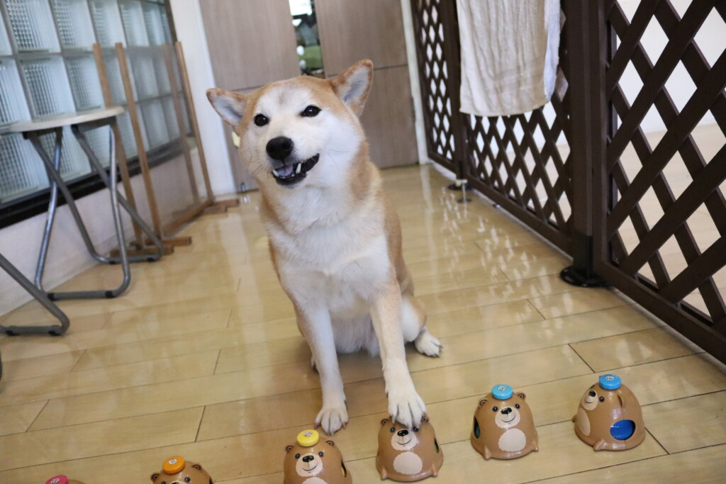 今日は全頭、お菓子の箱を使って物慣れやトリック練習を行いましたよ☆