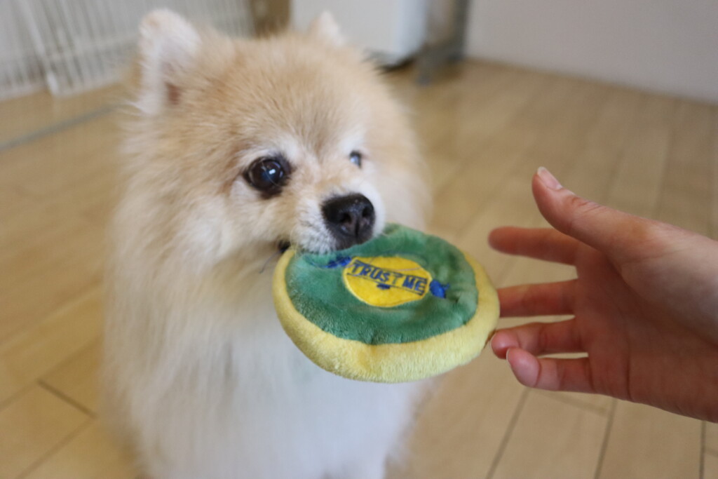 パピーくんは最近、頑張っているディスクキャッチの練習を行っています!