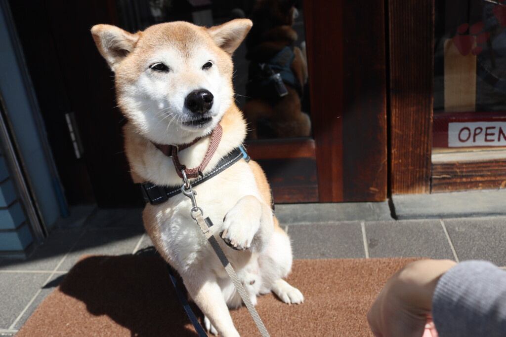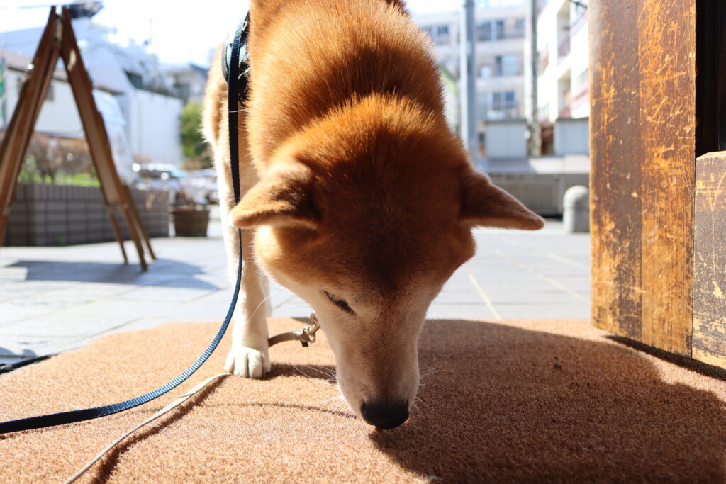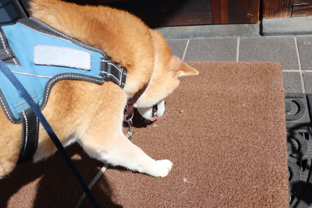 青くんはお店の前に敷いてあるマットで足場慣れ!