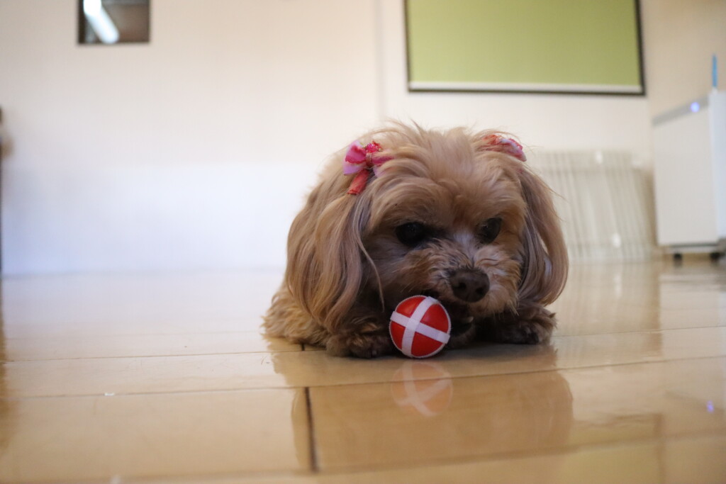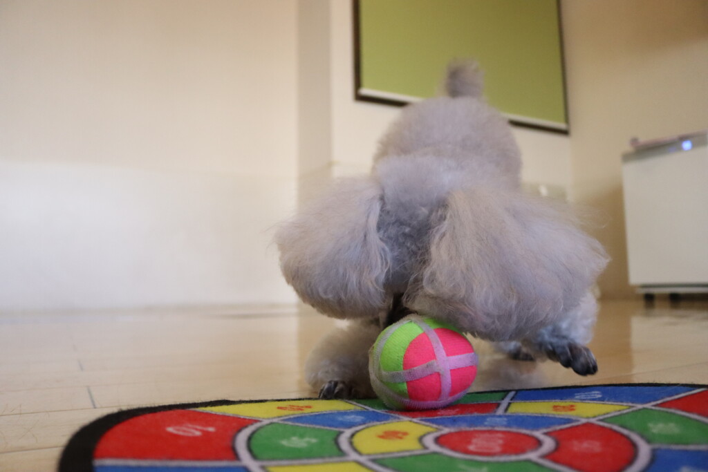 ボールを転がして的に乗せることが上手になってきたシルヴィーちゃん✨
