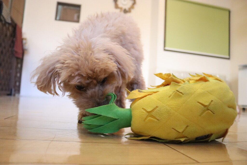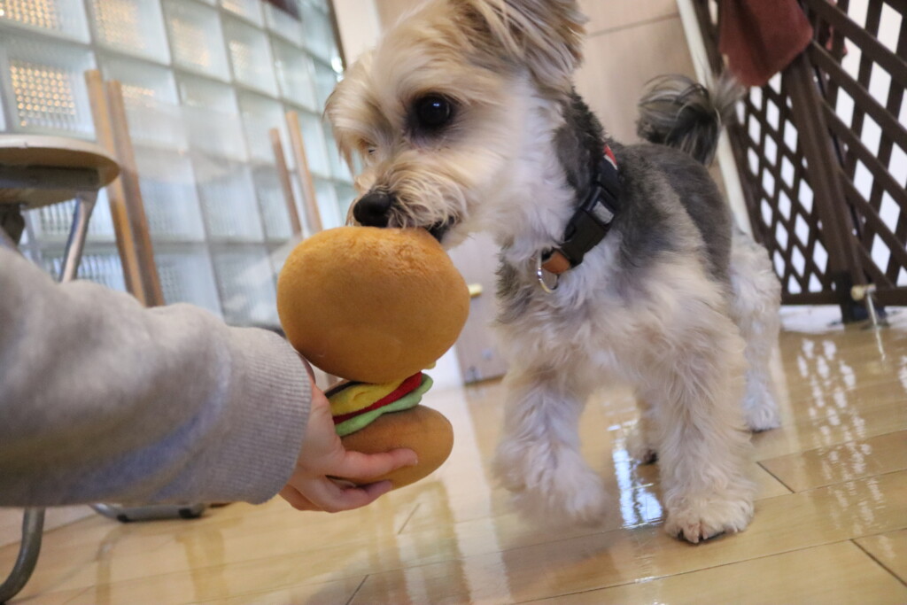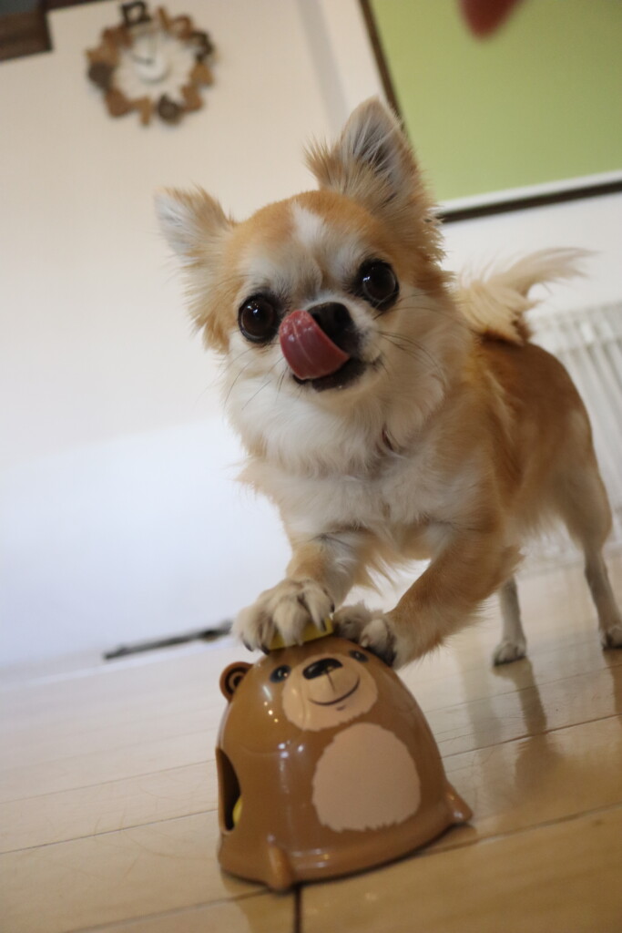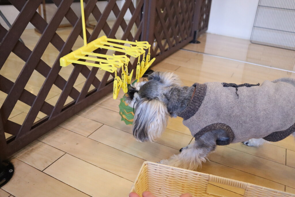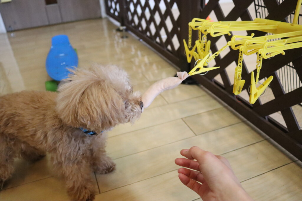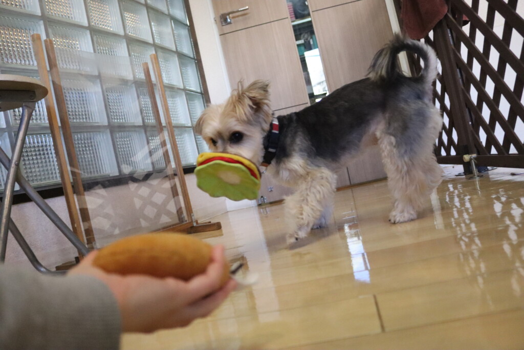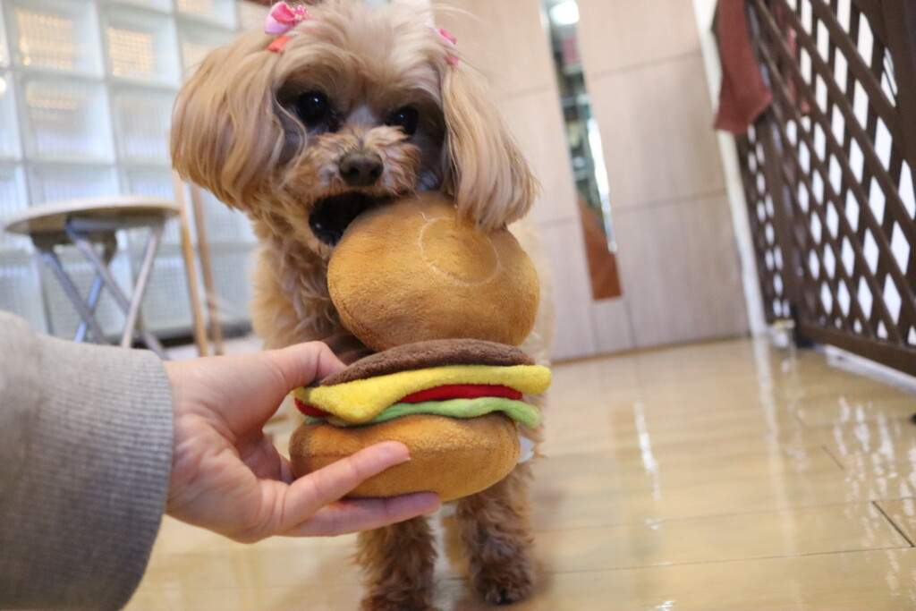 おもちゃをくわえて、