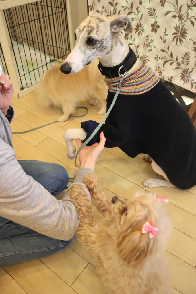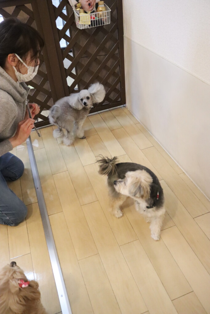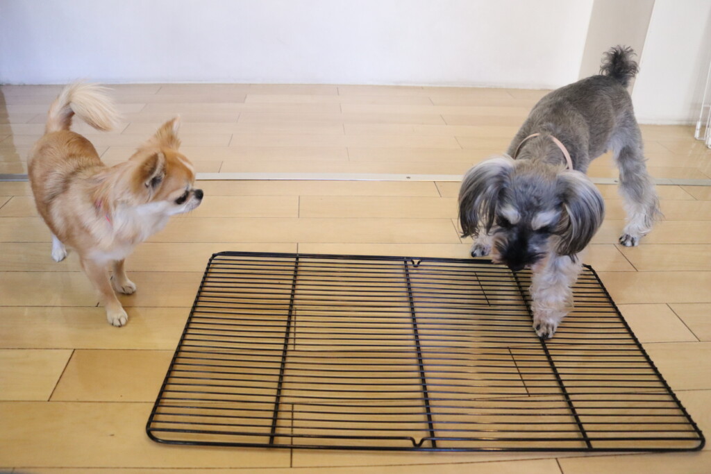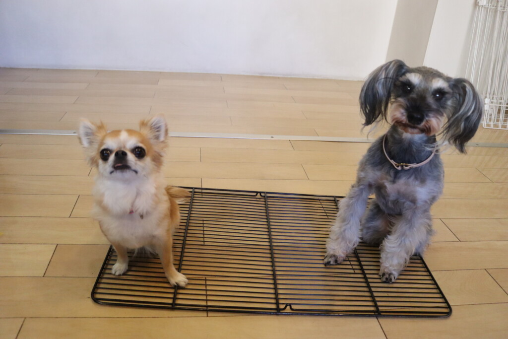 小春ちゃんとこむぎちゃんはサークルで一緒に足場慣れ🌟