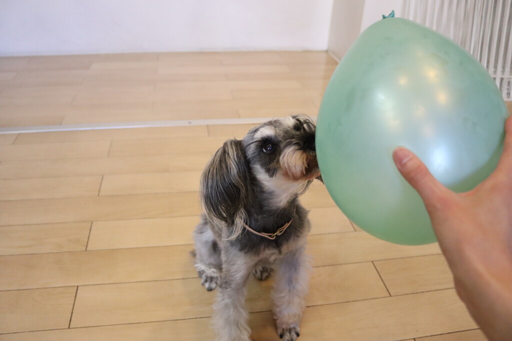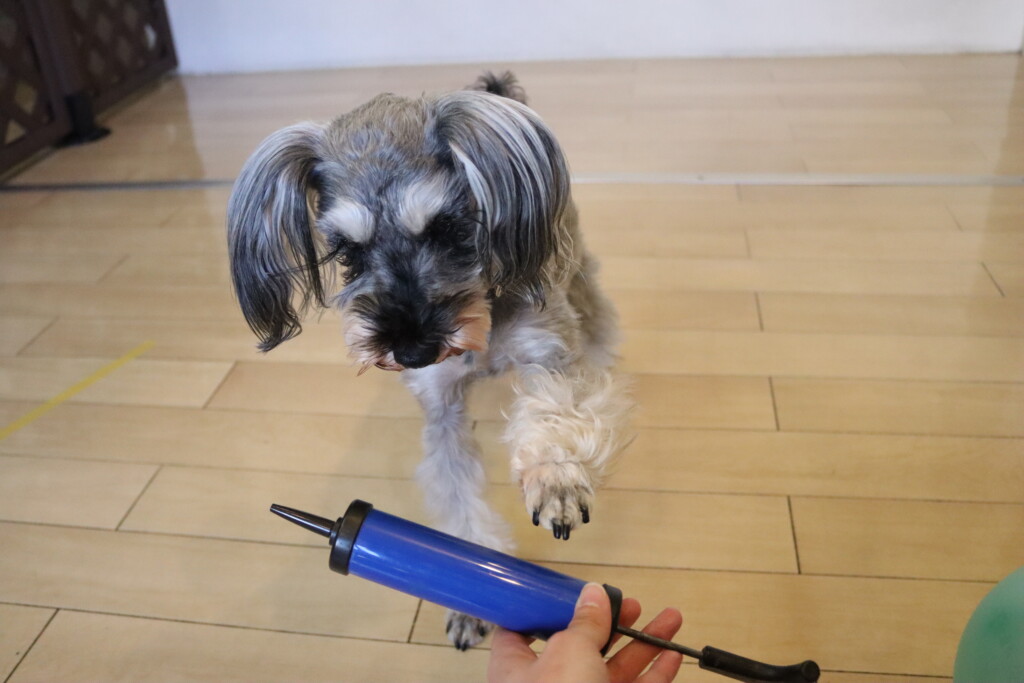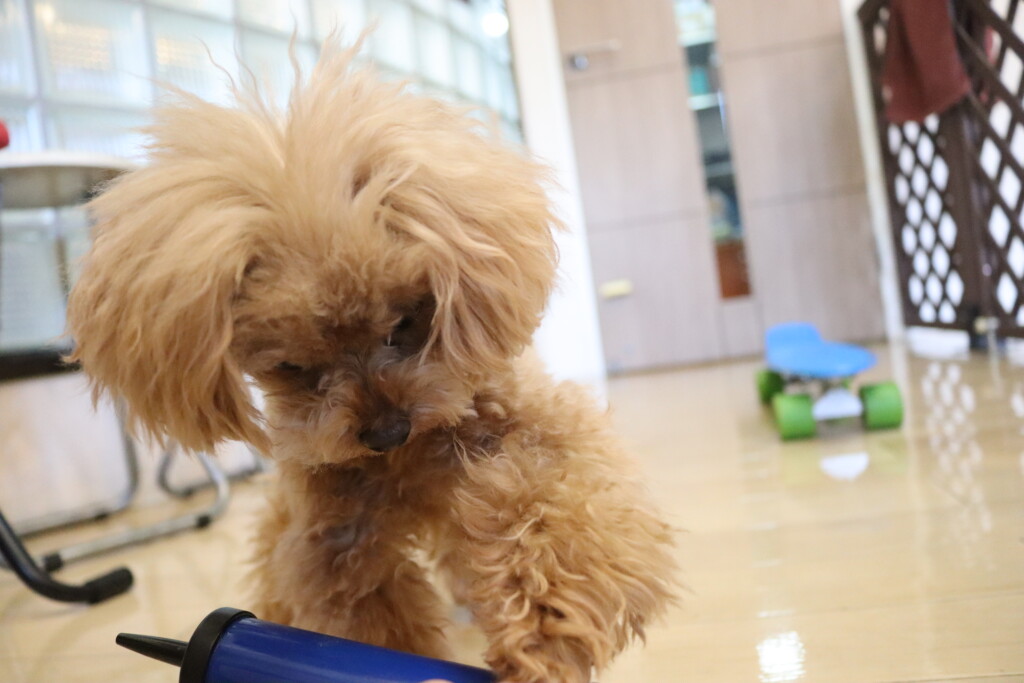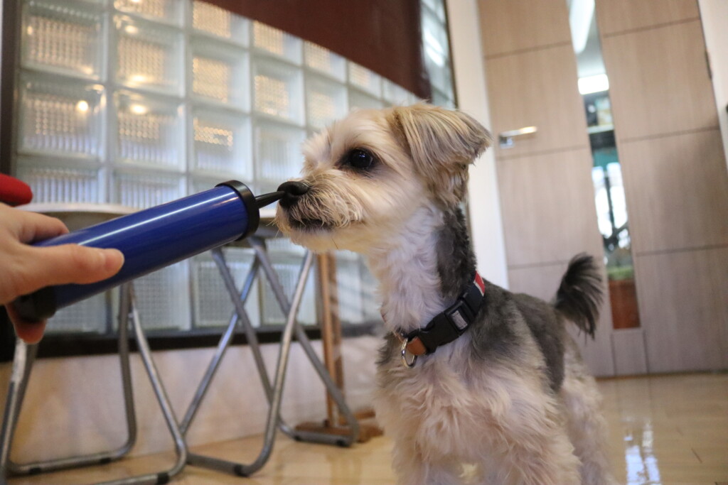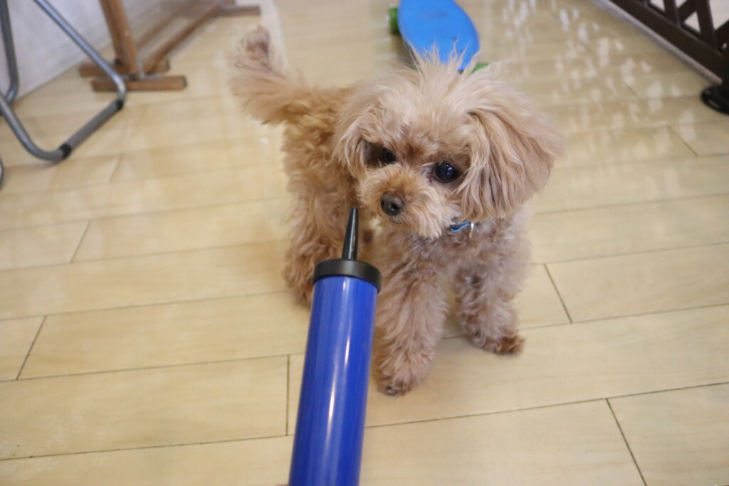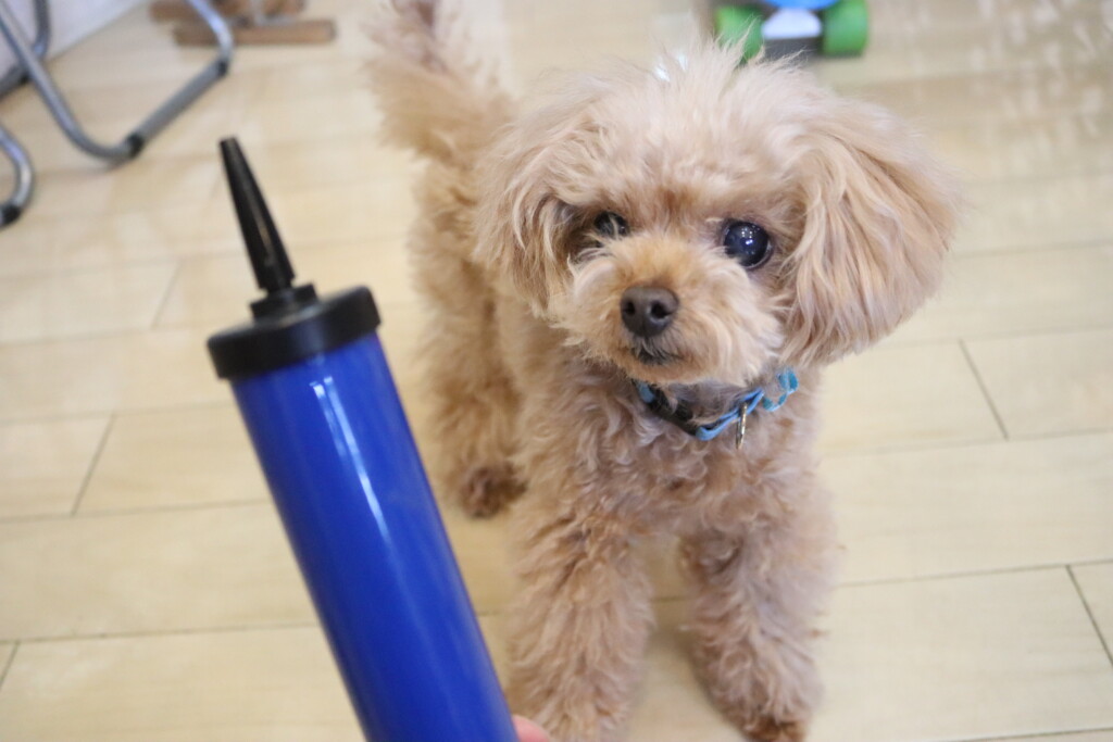 小春ちゃん、こむぎちゃん、むぎくん、ルルちゃん、あずきちゃん、金ちゃんは風船の空気入れで物慣れ🌟