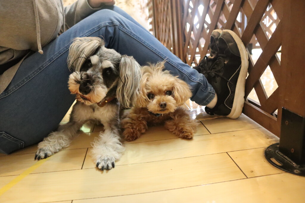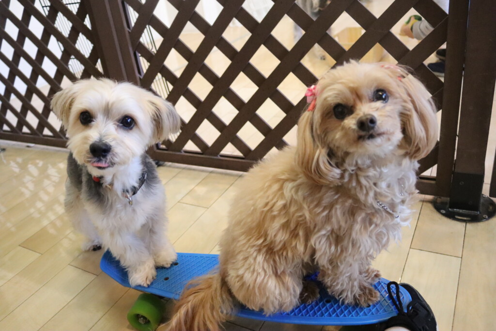 ちょっぴり犬が苦手な小春ちゃんは少し距離がありますが、一緒に上に乗ることが出来ましたよ✨