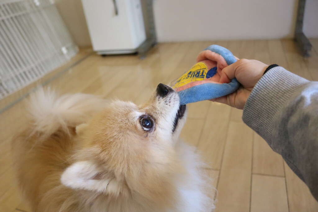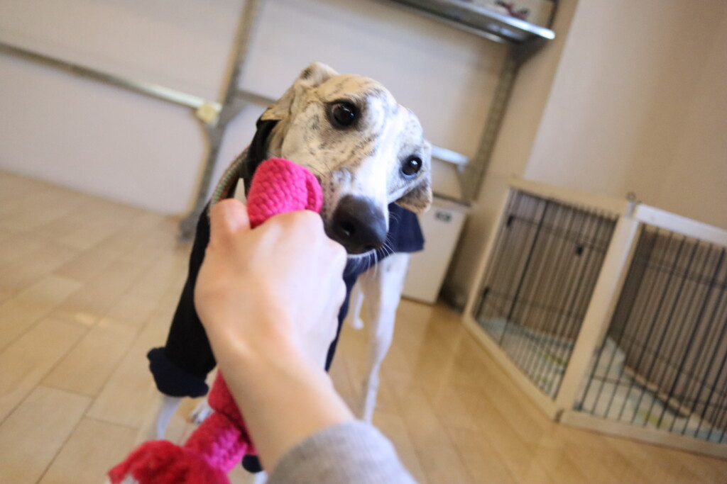 持ってきた後はご褒美の引っ張りっこ遊び☺