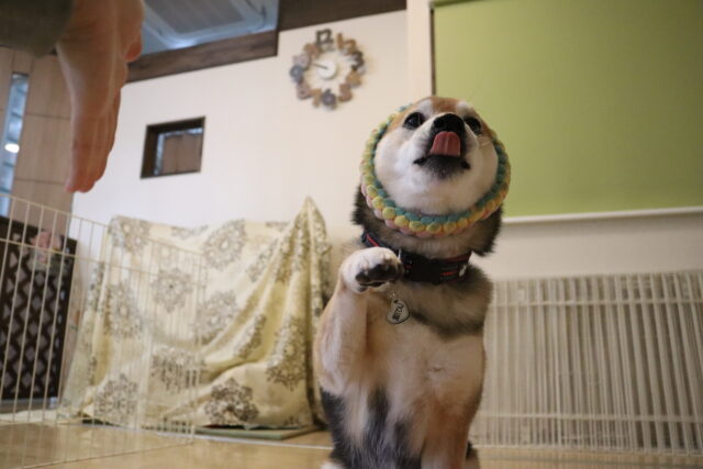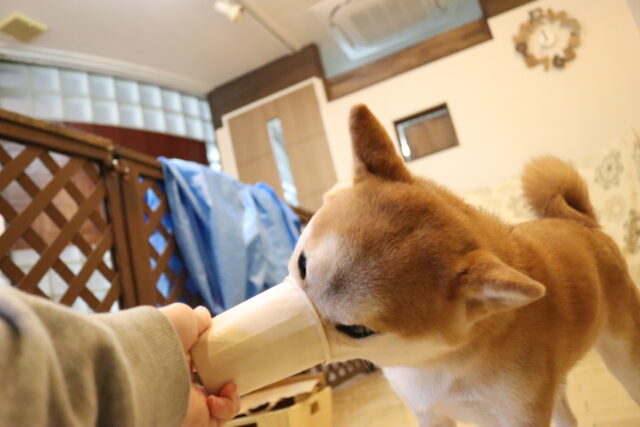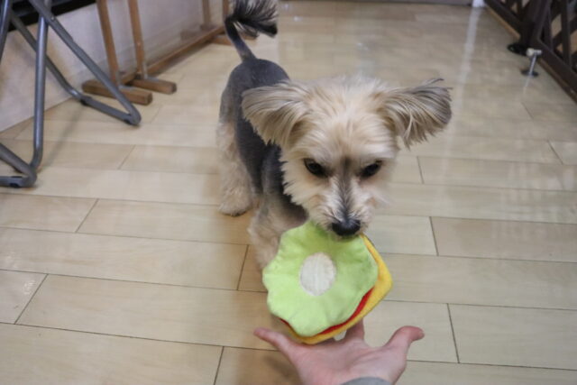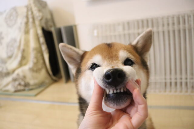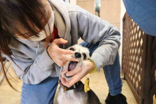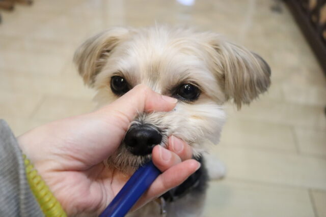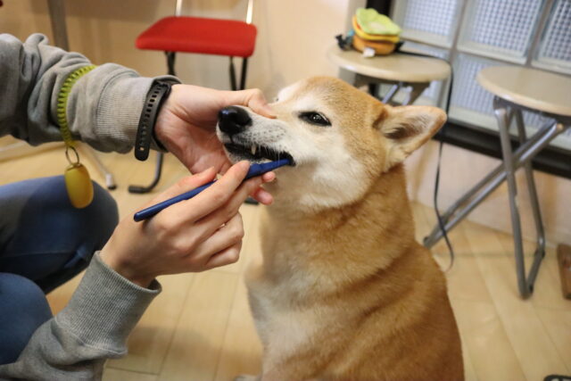 むぎくんは対面での歯磨き練習を始めています!
