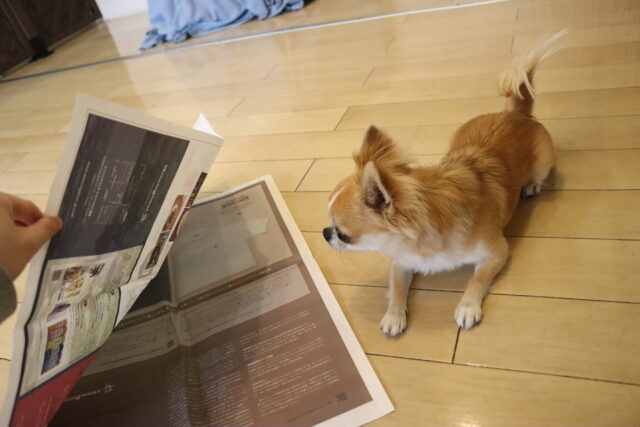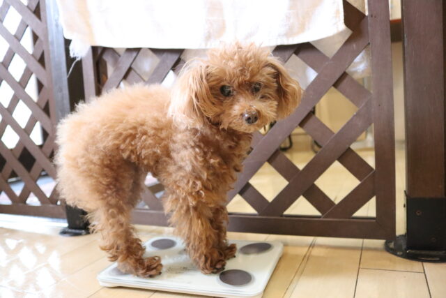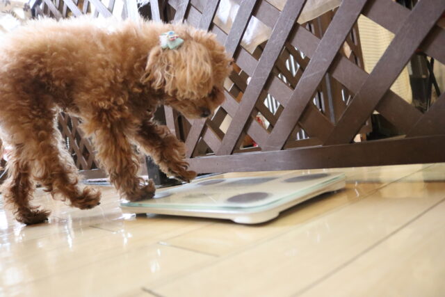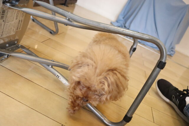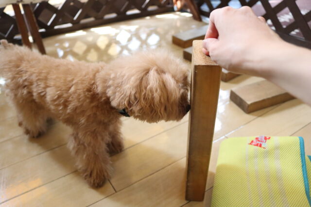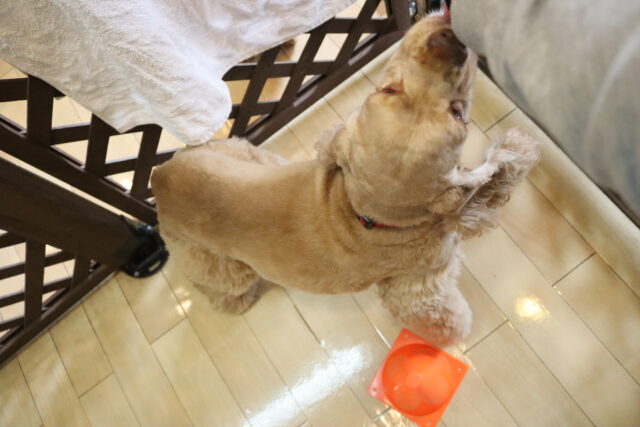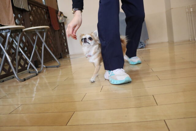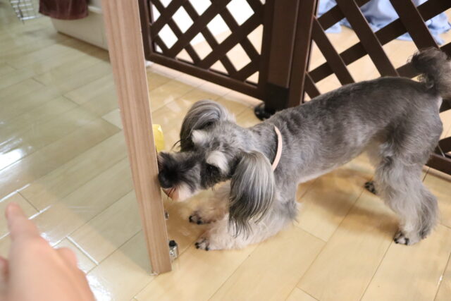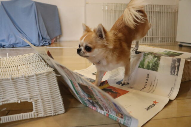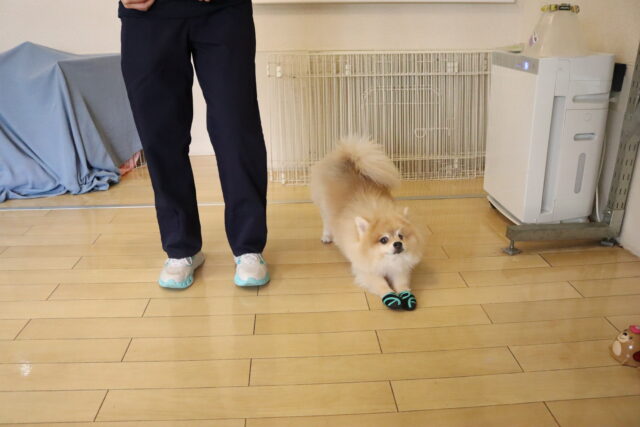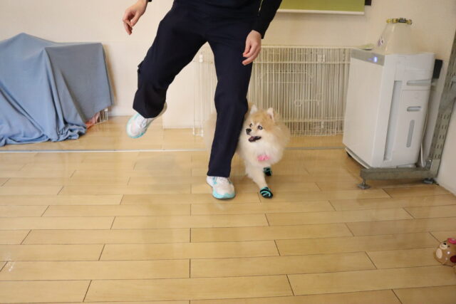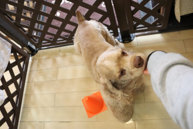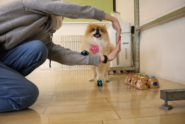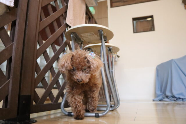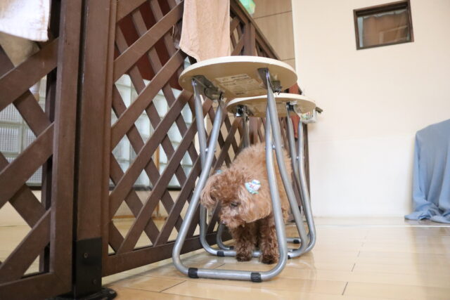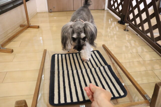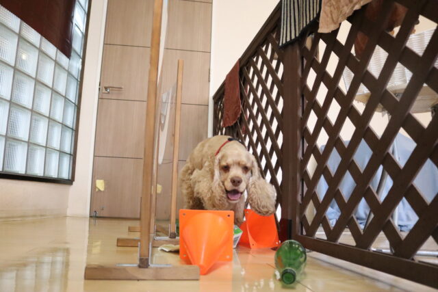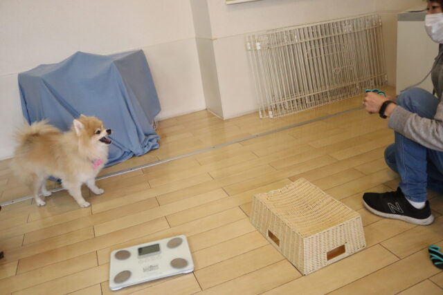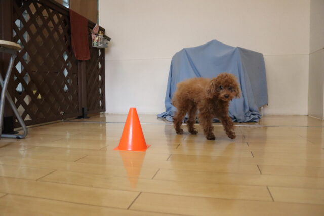 こむぎちゃんはパーテーションを使って足場慣れ!