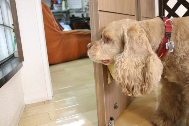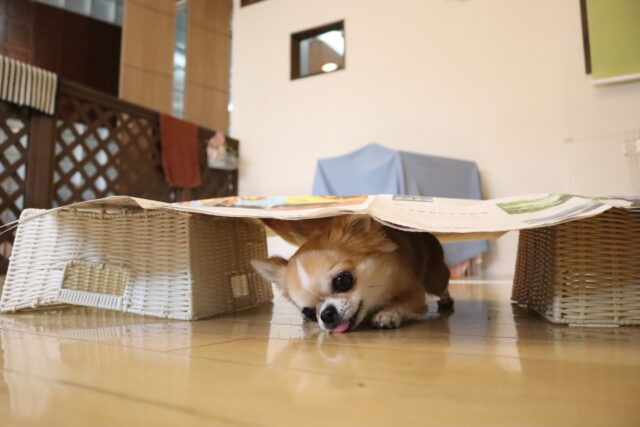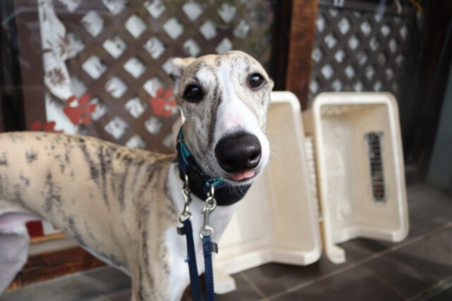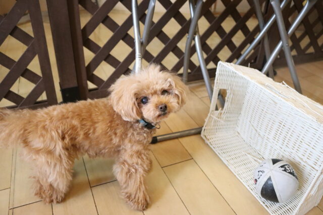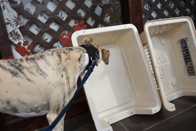 トアくんは窓に立てかけてあったクレートが気になる様子…