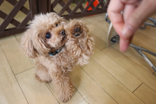 フードの誘導で4つ足全て乗せることが出来ると「カッコいいでしょ?」と決めポーズ📸