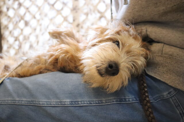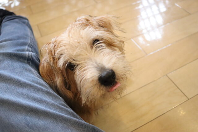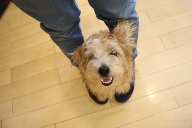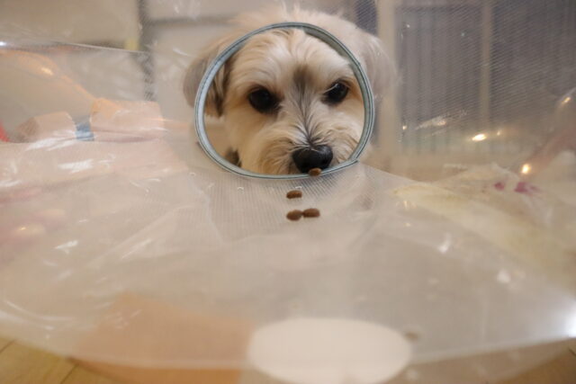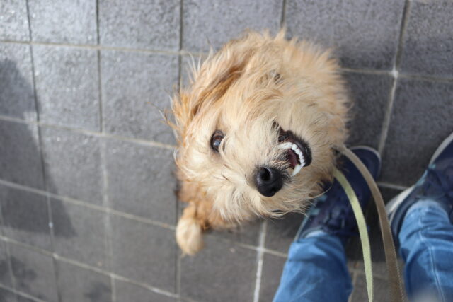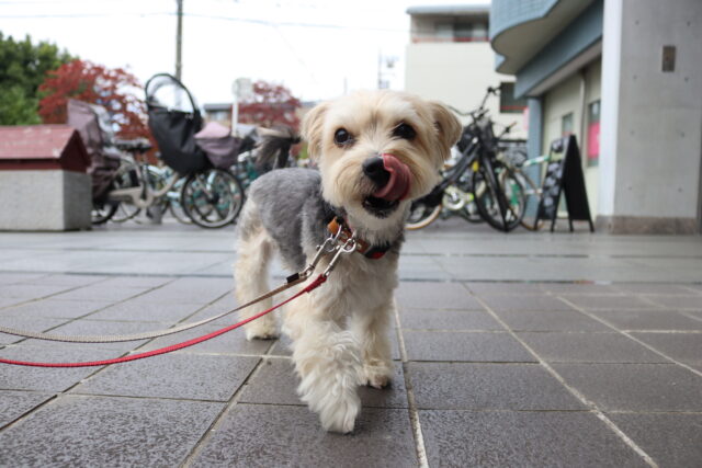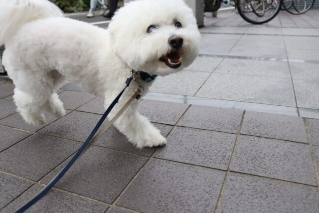 人や自転車、バイクなどまだまだ気になるものはありますが、フードに集中して歩けることも少しずつ増えてきています!