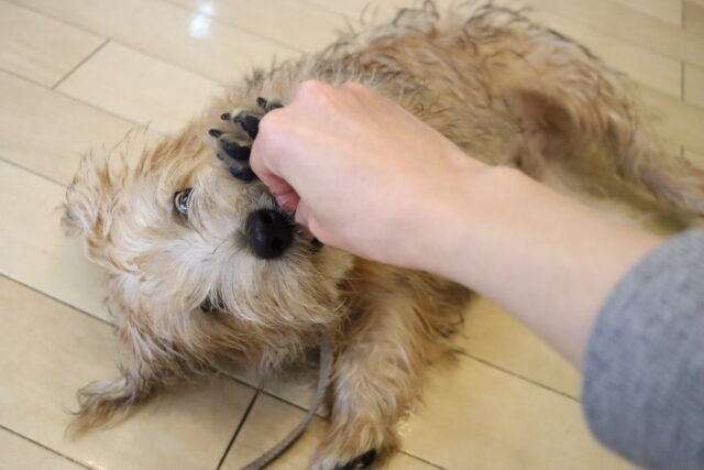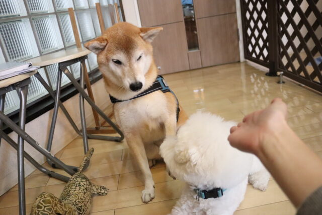 前足を当てると「あ、ごめん・・・」と気まずそうでした🤭