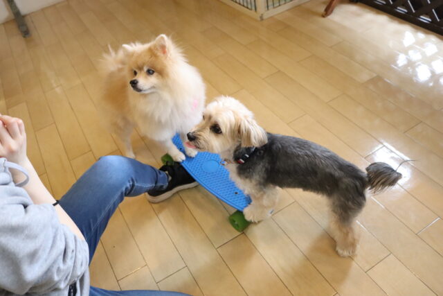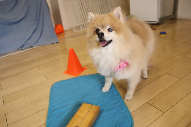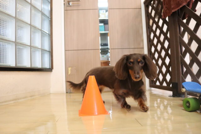 犬バージョンの”コーン回って”や、スケボー乗りに挑戦しました!