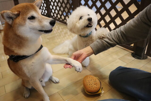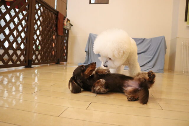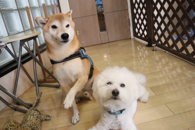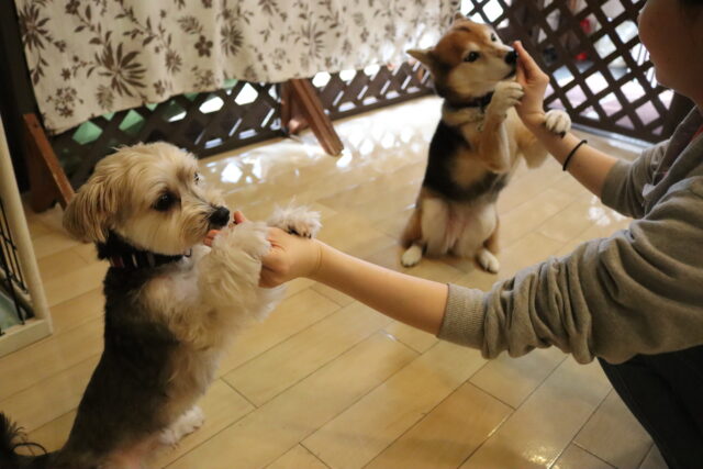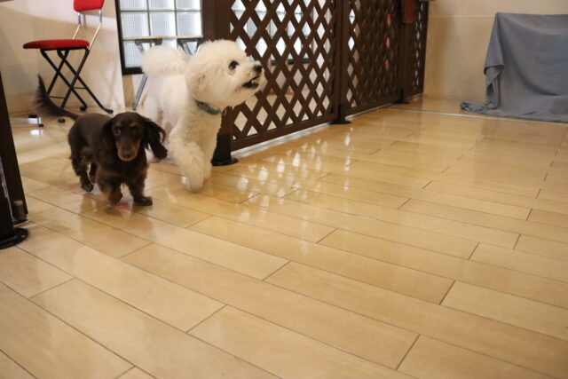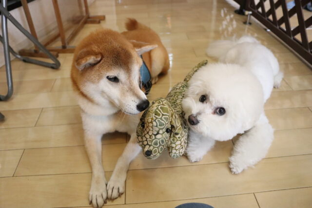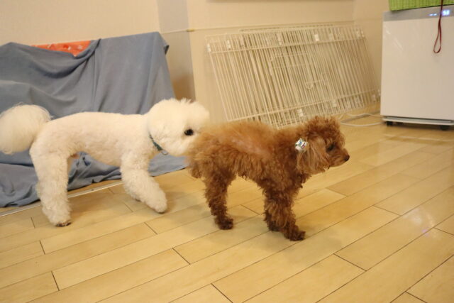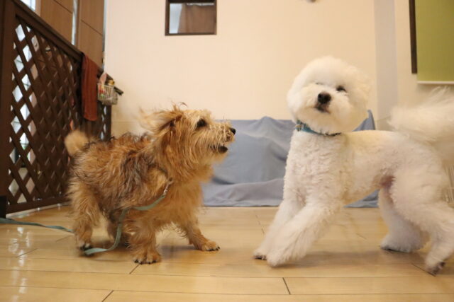 パピーくんとむぎくんも一緒に過ごしてコラボ技を練習しています🎵