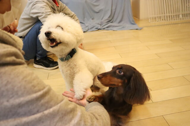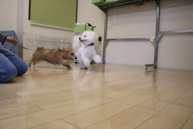 パピーくんは研修生と足ジャンプ、腕ジャンプを練習🎵