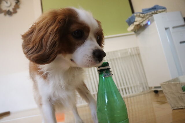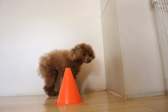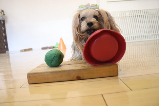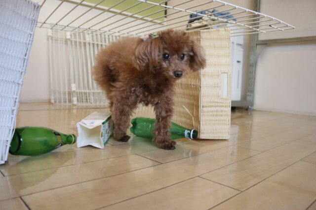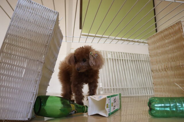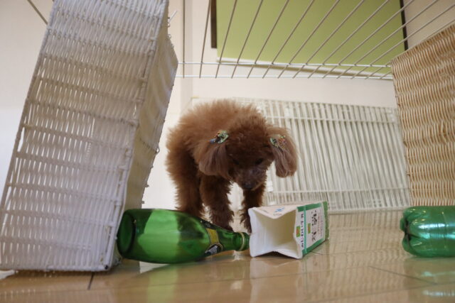 マロンくんはサークルくぐり!下にはビンや牛乳パック!マロンくんくぐれるかな~?