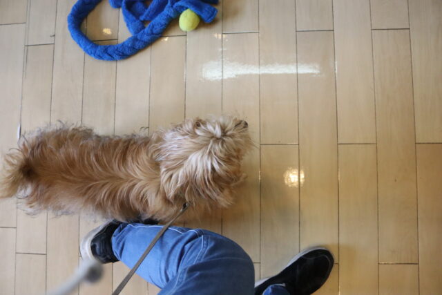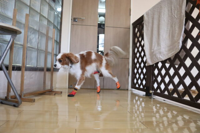 靴が気になるようで、大興奮のアルくん!