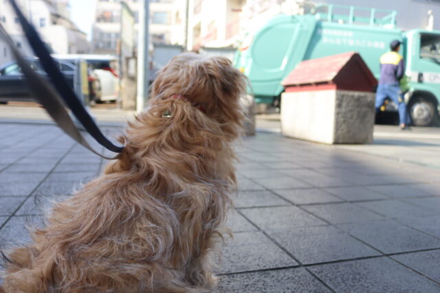 お外にも出て練習!気になるようでしたが、後半は落ち着いて歩けることも✨