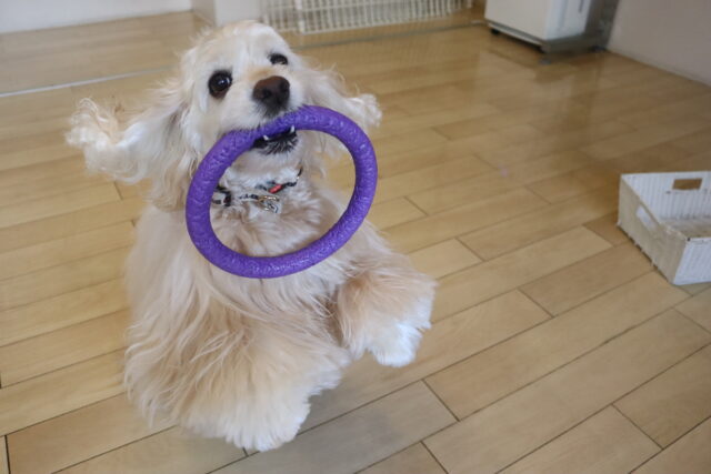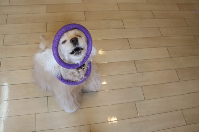 ベルちゃんは輪投げを練習!