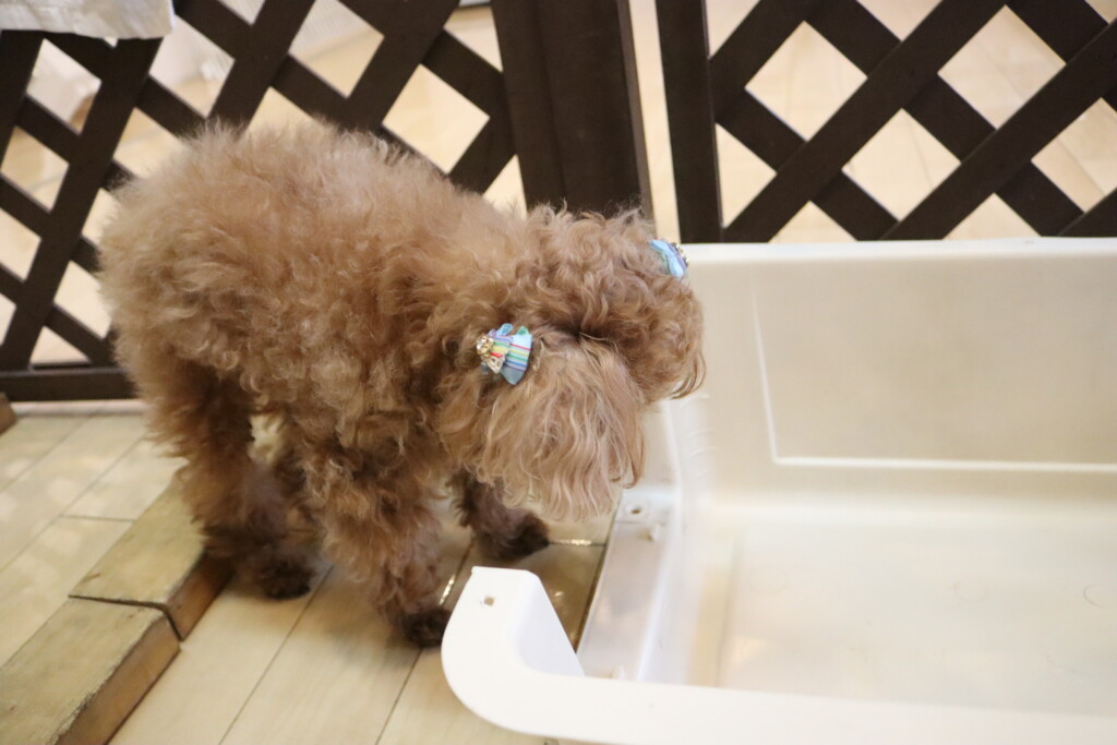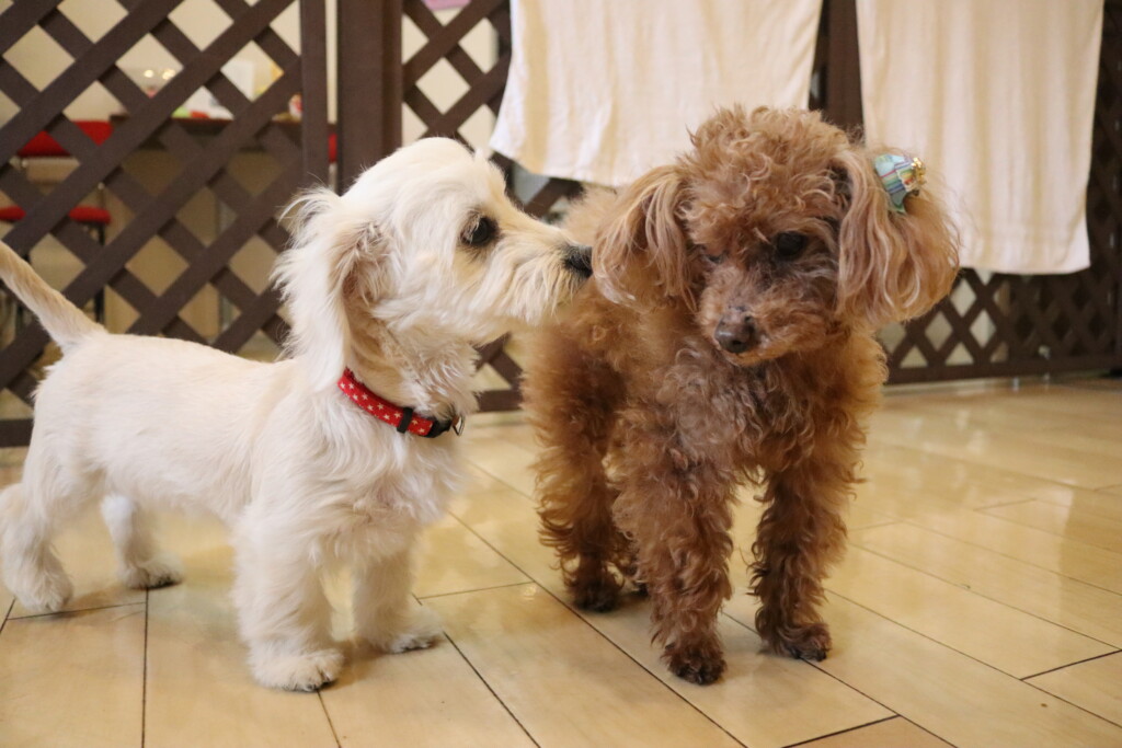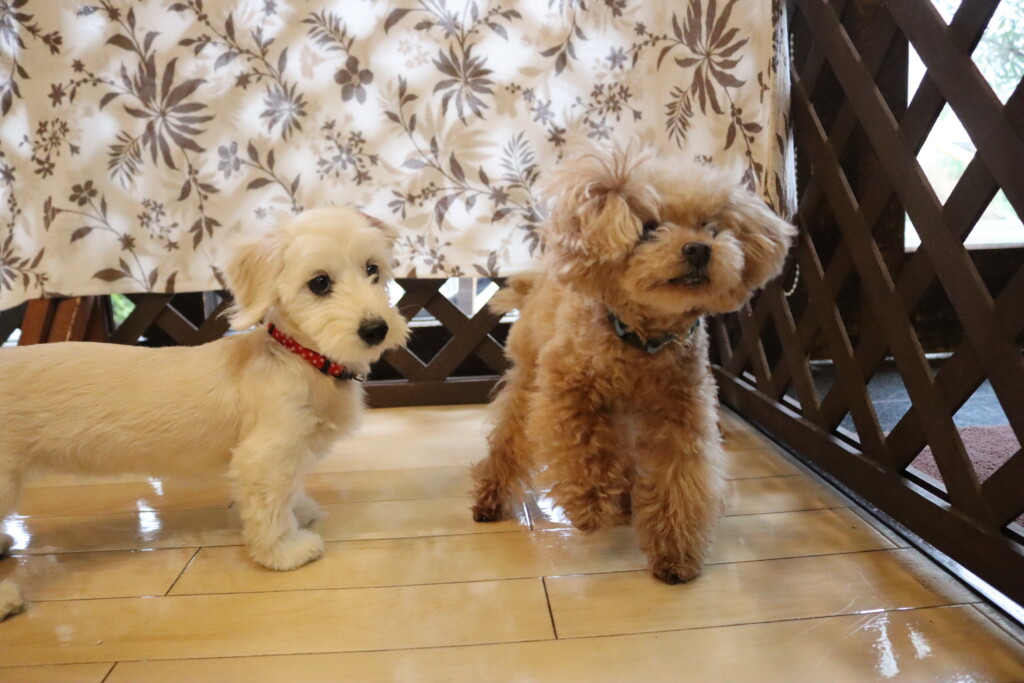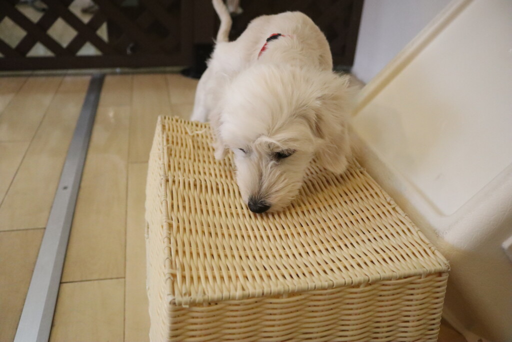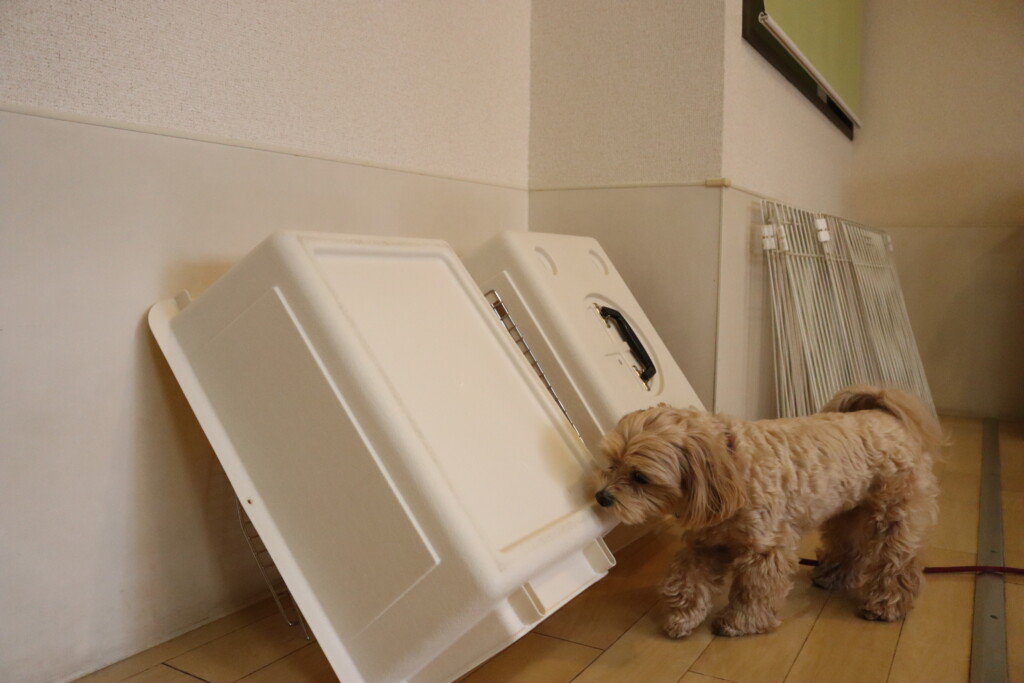 立て掛けてあるクレートを見つけると不思議そうにチェックを行う茶々ちゃんと小春ちゃん!