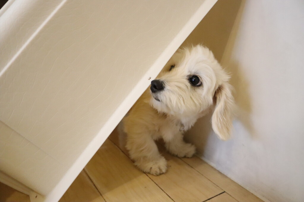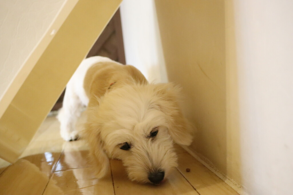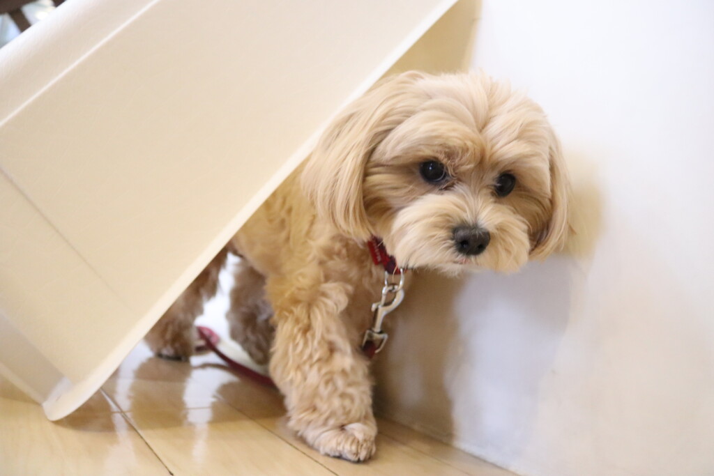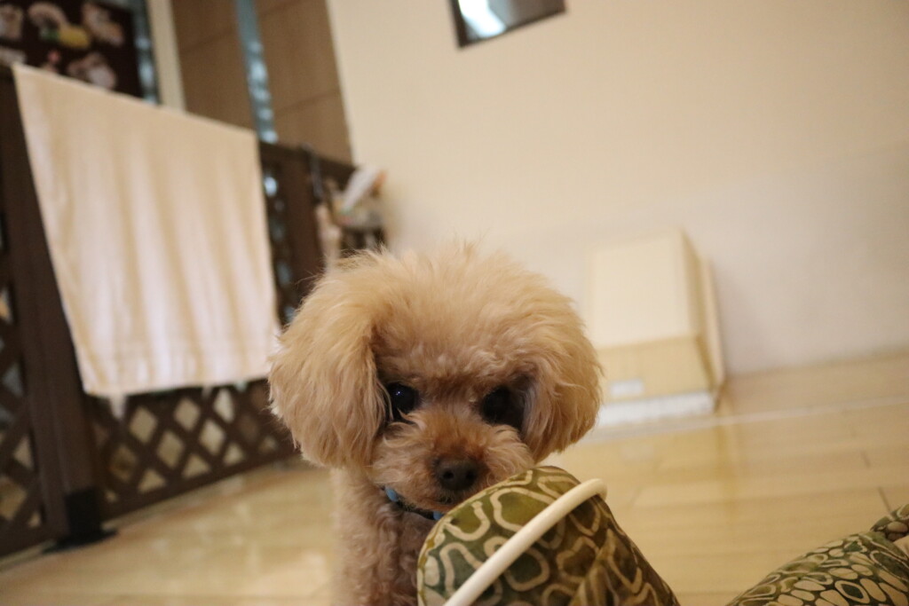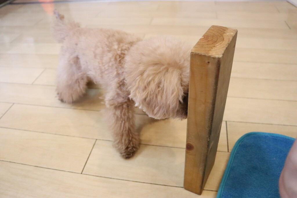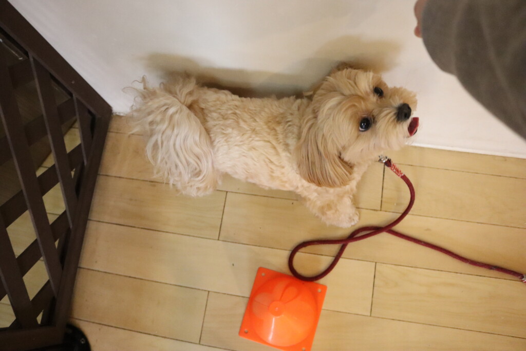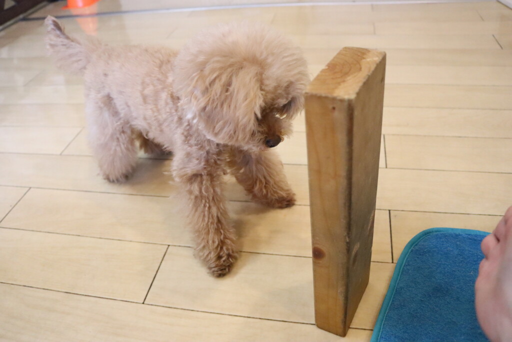 その後はオヤツやフードの誘導で立て掛けたクレートの下をくぐり抜けることが出来ました👏