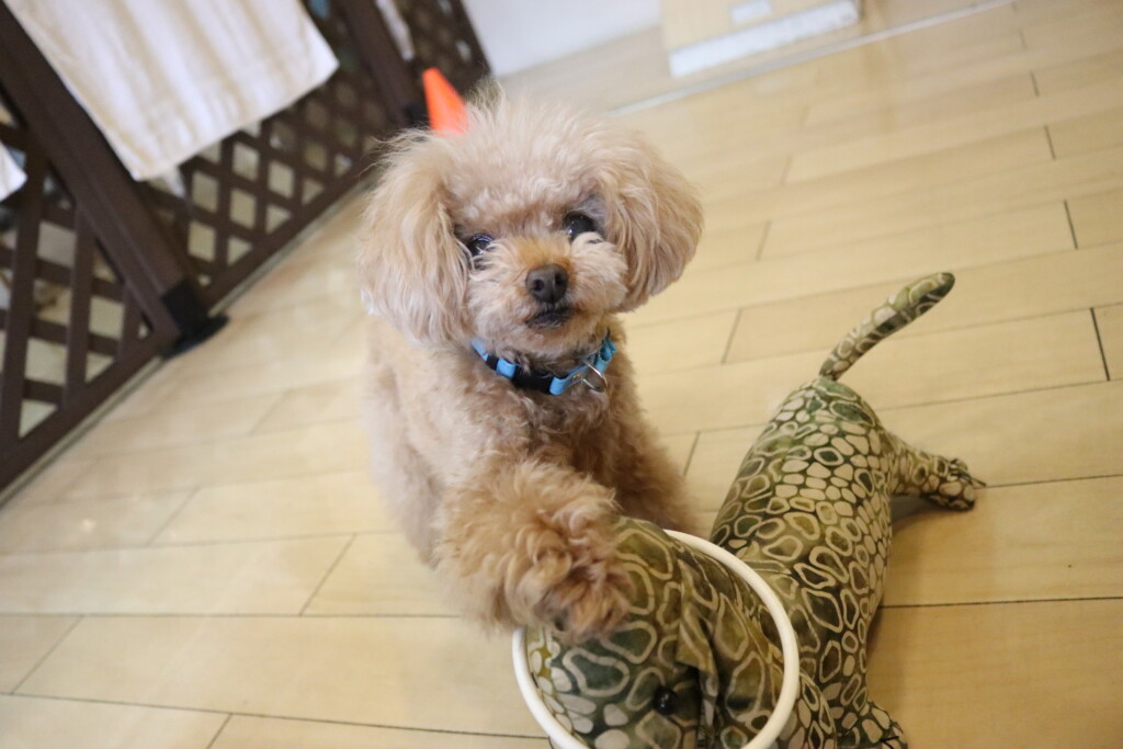 必死にオヤツを食べようとする姿が可愛かったので公開♡