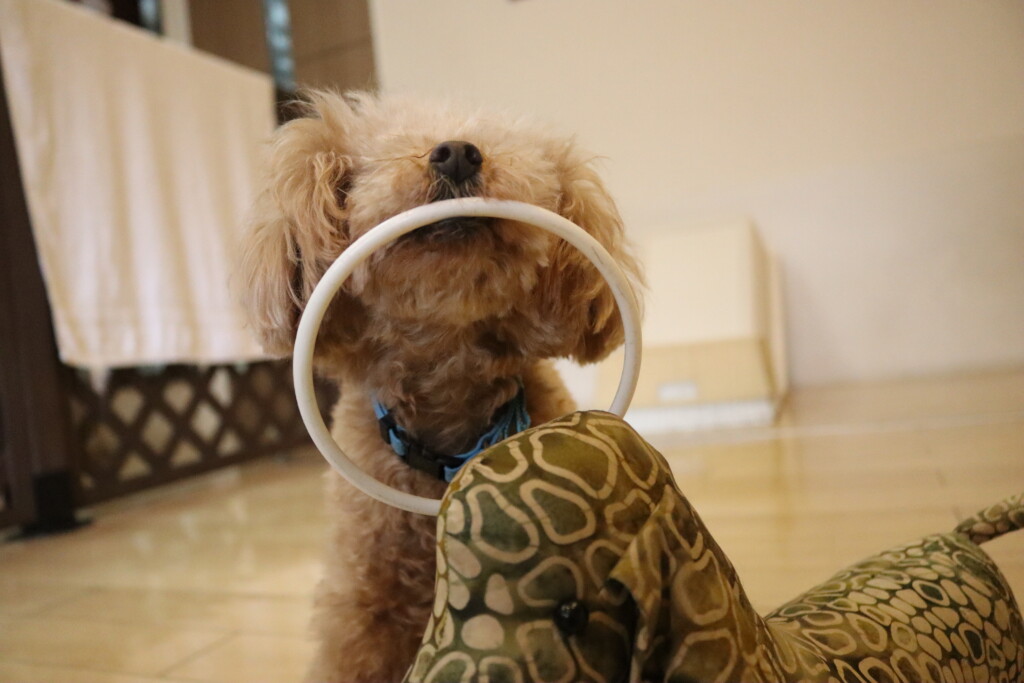 茶々ちゃんはエリザベスカラー慣れもしています!