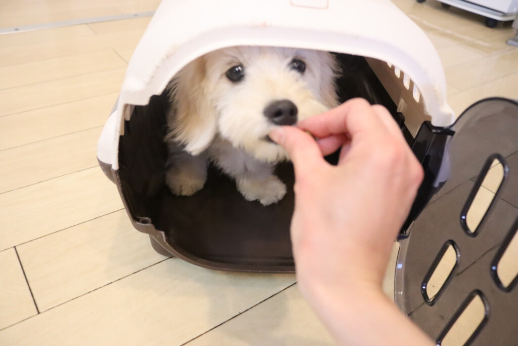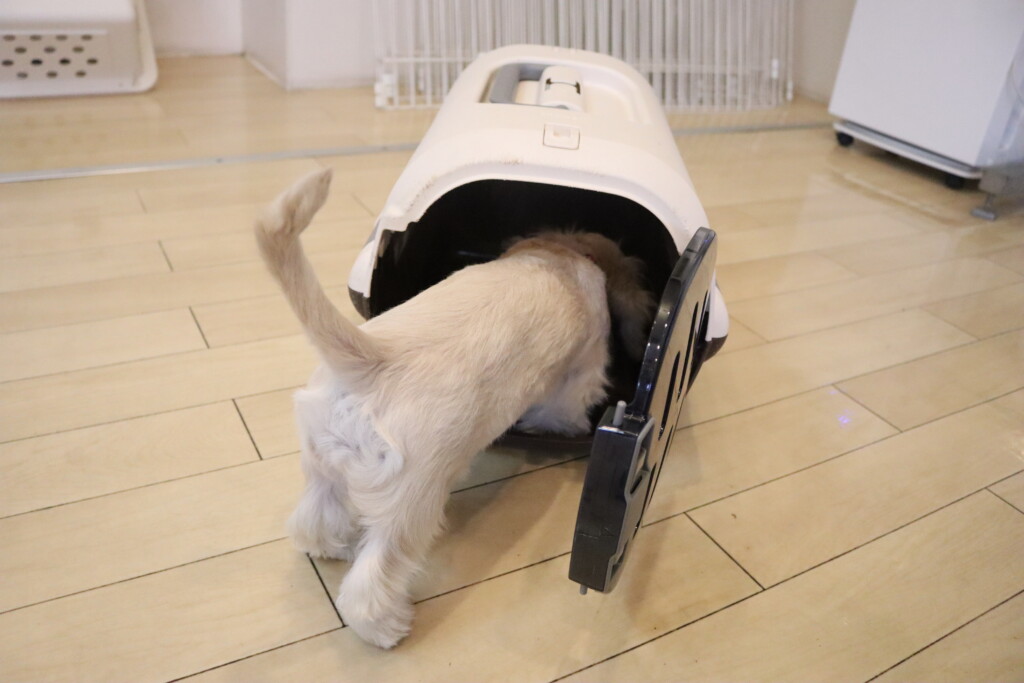 試しに中に入ってみると「いつも寝ているクレートか!」と納得した様子でした♪