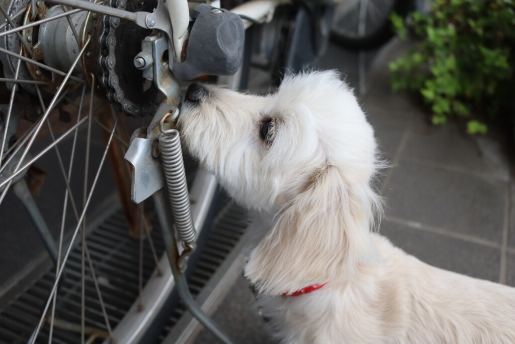 自転車を見つけると自ら近づき怖いものではないかチェックを行うマチルダちゃんです♪