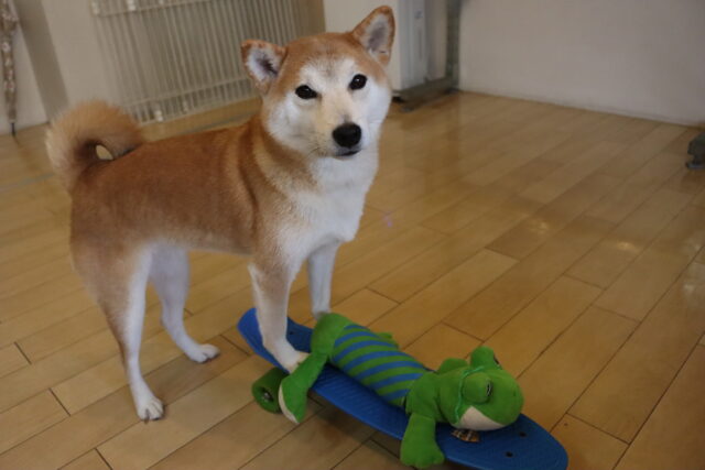 今回はカエルのぬいぐるみの上にアゴを乗せることにも成功!
