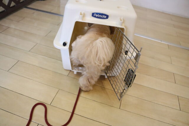 「ハウス」の声掛けと手の誘導で入ることが出来るよう練習を頑張りました✊