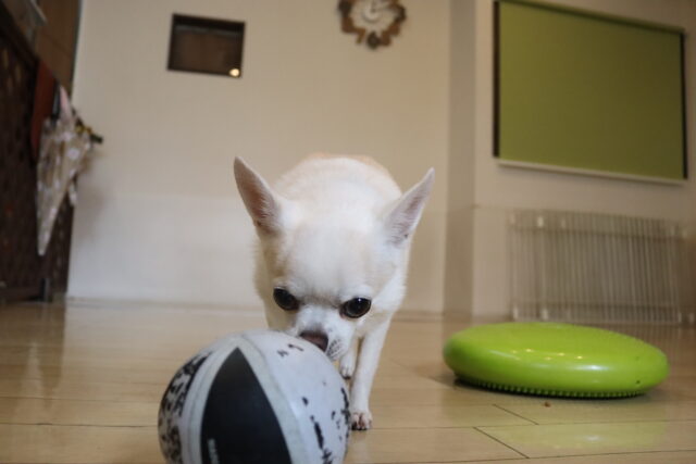 マロンくんは輪っかを見せると「またこれをやるんですか?」と文句を言いたそうな様子(笑)