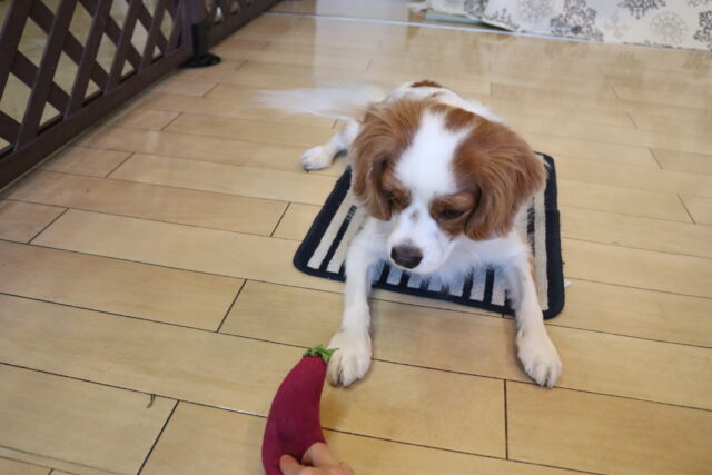 行くよー!と投げてみると顔に当たっちゃいました💦