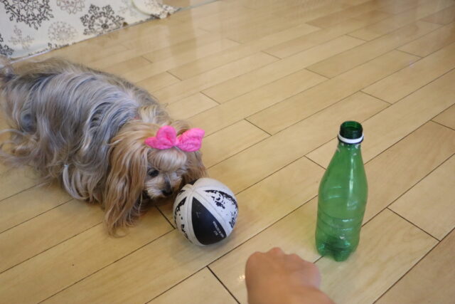 勢いよく何度も何度もボールを転がすりれらちゃん!