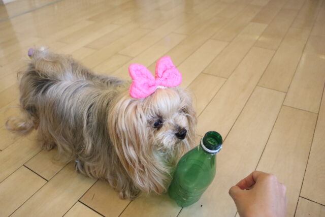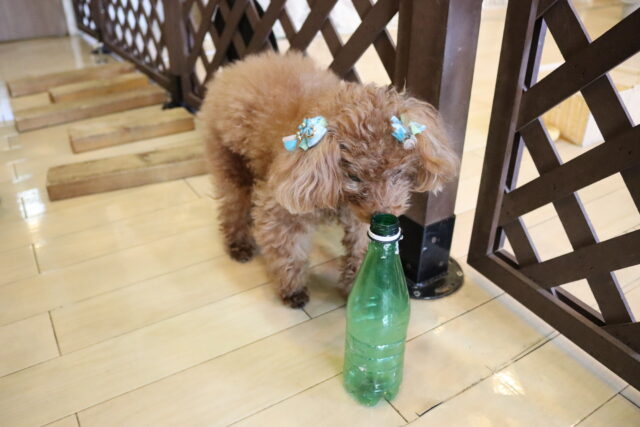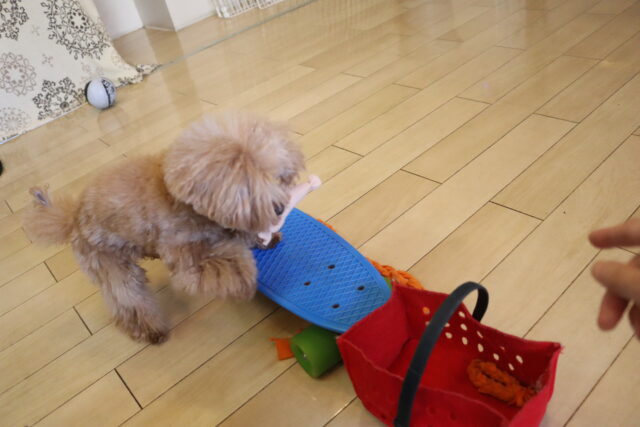 前回は前足でちょんと触るのがやっとでしたが、少しずつ慣れてきたようで、