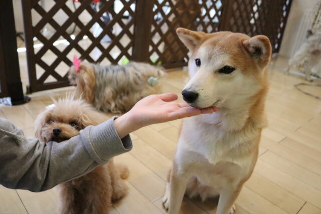 扉を動かすととても気にしていた小春ちゃん💦ですがフードで近づくことが出来ましたよ😊