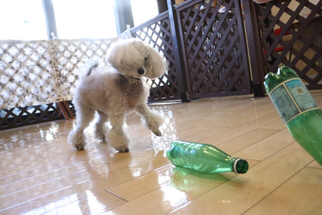 シルヴィーちゃんは2本連続のペットボトル倒しに挑戦!