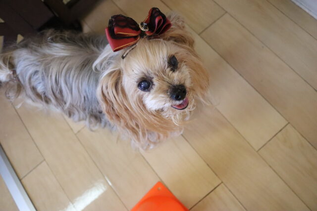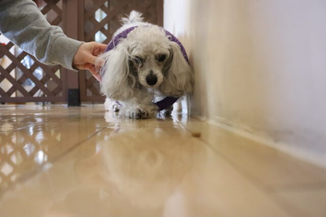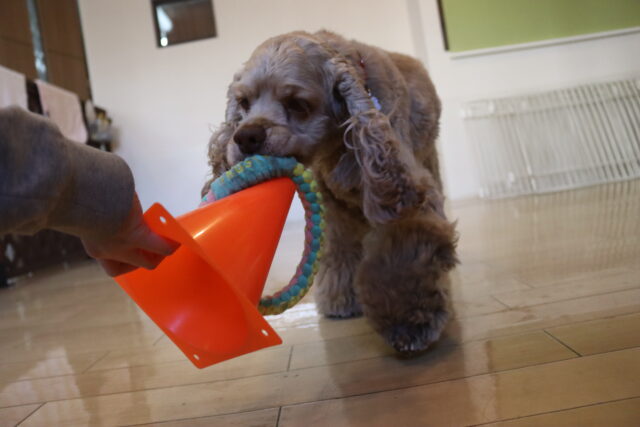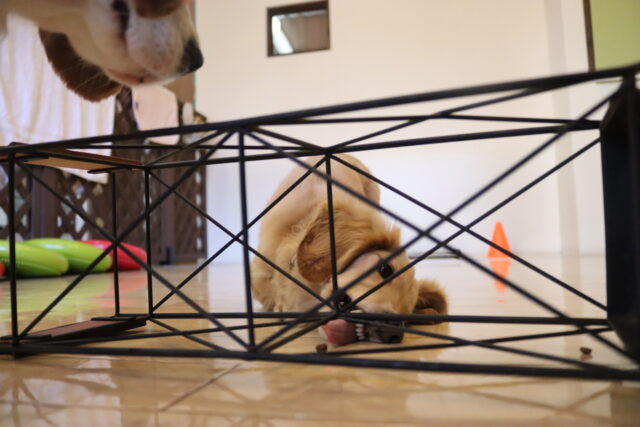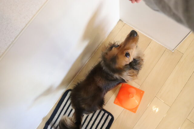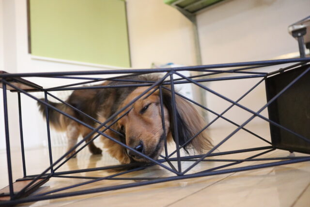 傘立ての中に入れたフードを一生懸命取ろうとしますが、なかなか取れない麦ちゃん!