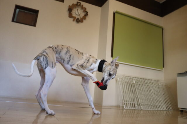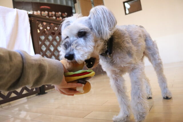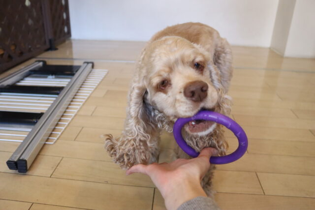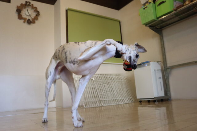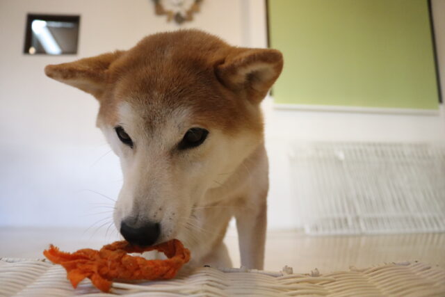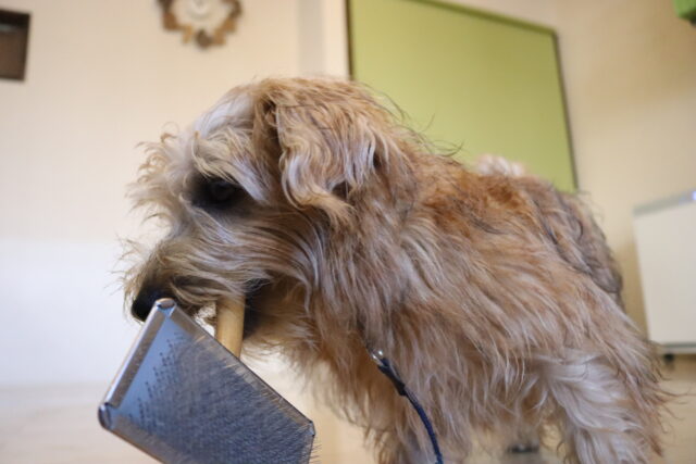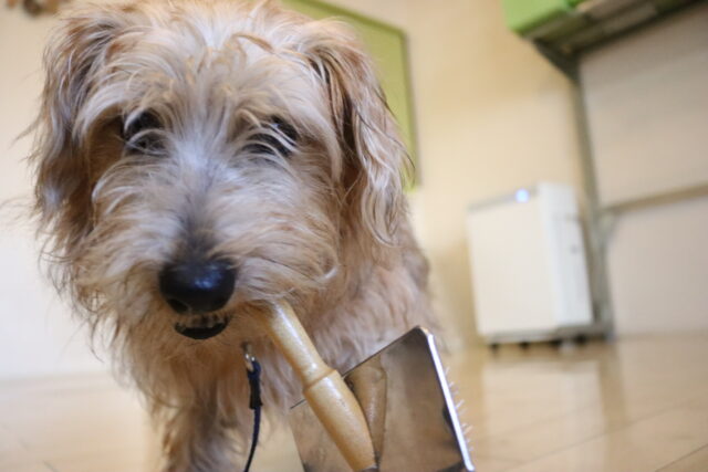 ですが、隙あらばブラッシングを咥えて逃走していました💦