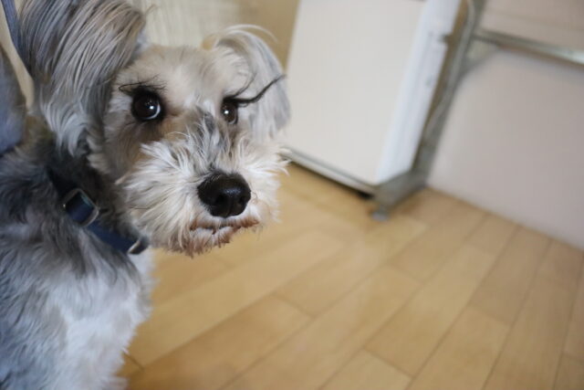 フードを与えながらブラッシングを行うことはお利口さんなオスカーくん!
